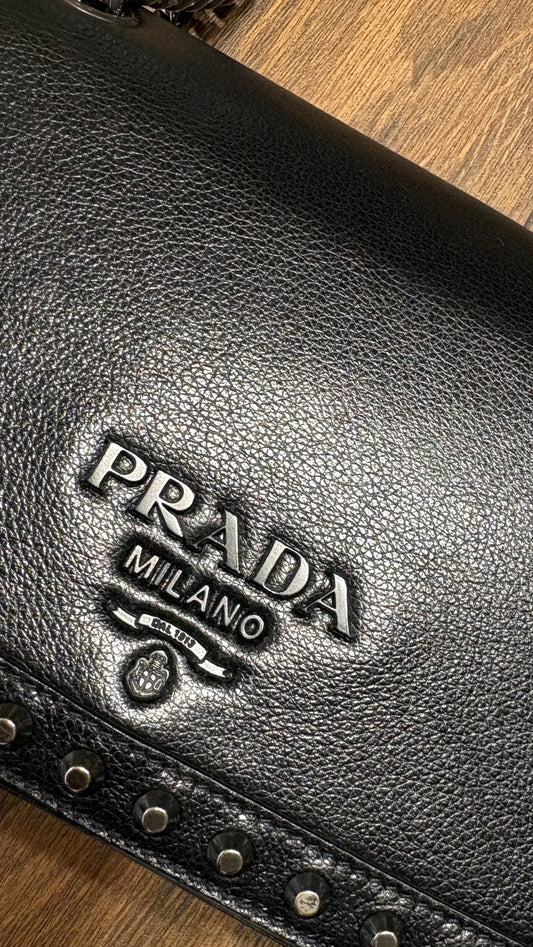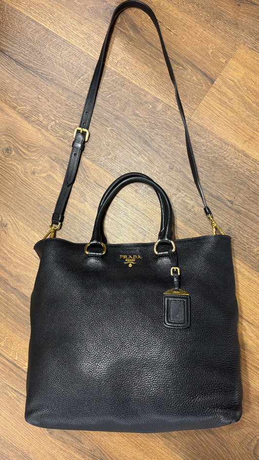 Prada borsa tote in pelle nera martellata