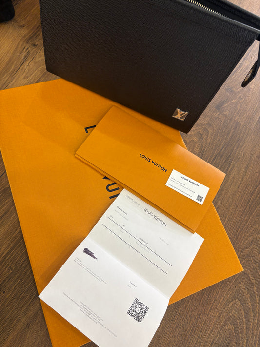 Louis Vuitton pochette Vojage in pelle Taïga nera. Nuova
