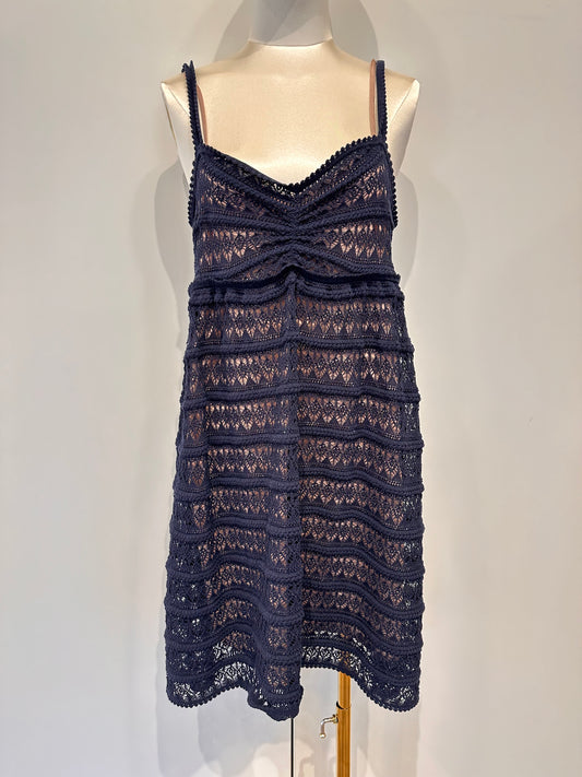 Gucci abito in pizzo in in cotone blu con sottoveste seta