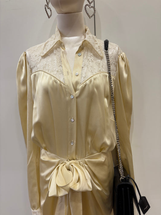 Magda Butrym abito seta champagne pizzo con fiocco
