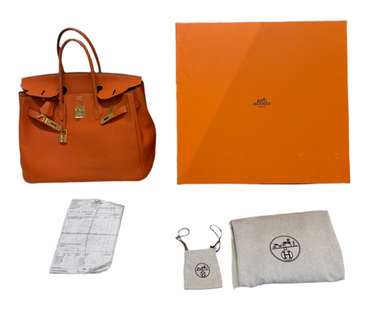 Hermès Birkin 35 in pelle togo orange metallo gold