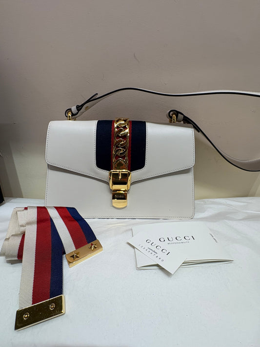 Gucci Silvye borsa in pelle bianca doppia tracolla