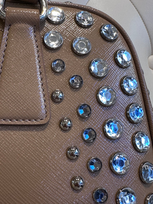 Prada borsa Pyramid in saffiano e cristalli