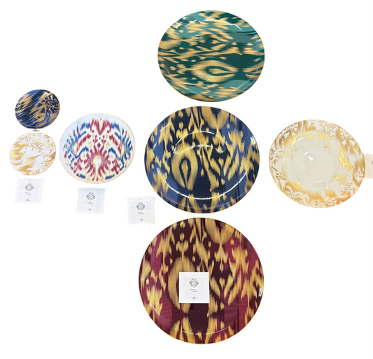 Hermès Vojage En Ikat set piatti porcellana e oro (24 pezzi) nuovo