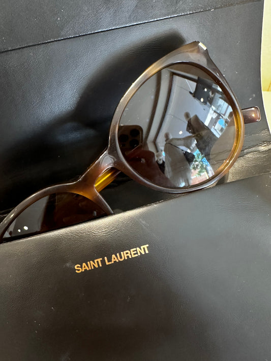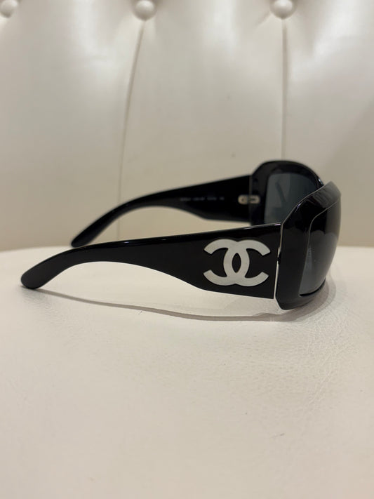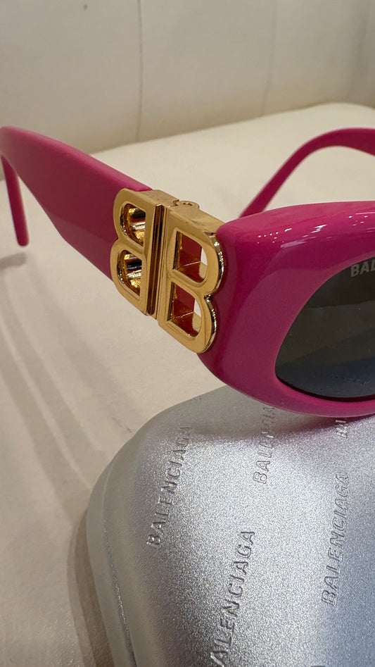 Chanel occhiali da sole round catene pelle e perle lenti rosa sfumate