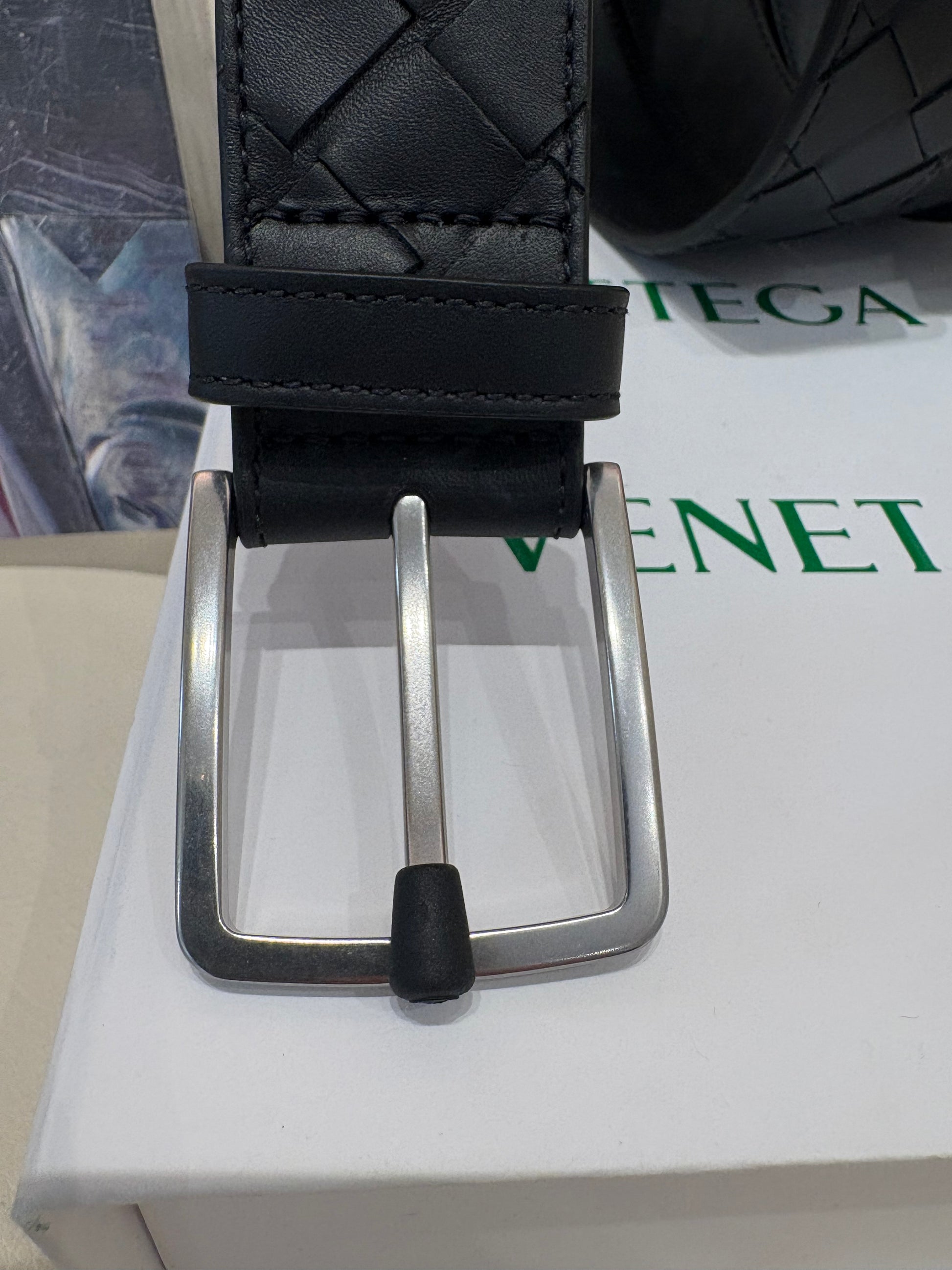 Bottega Veneta cintura in pelle intrecciata nera metallo silver , nuova con scatola misura 120 , altezza 3,5