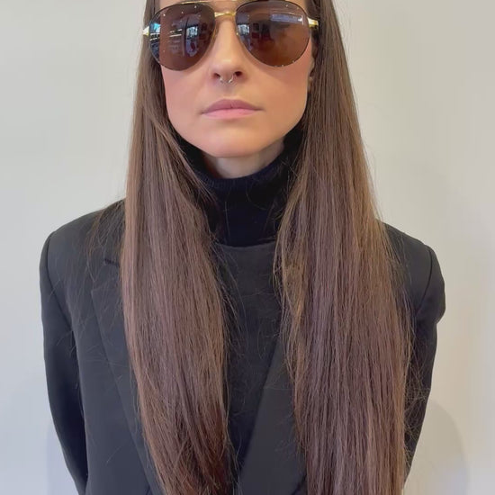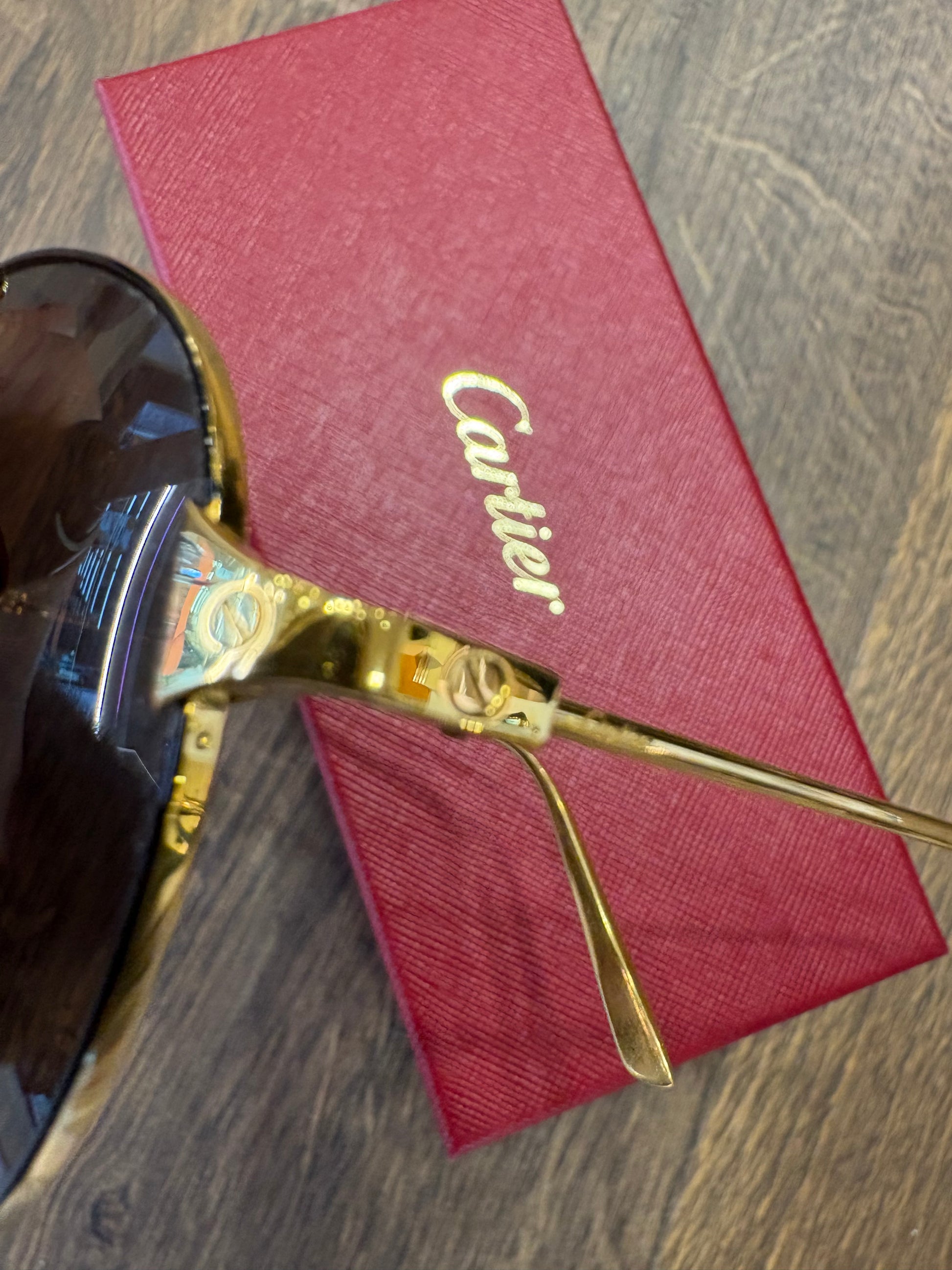 Cartier modello aviator con finitura dorata e lenti marroni. Caratteristiche principali- Stile: Aviator (pilota)