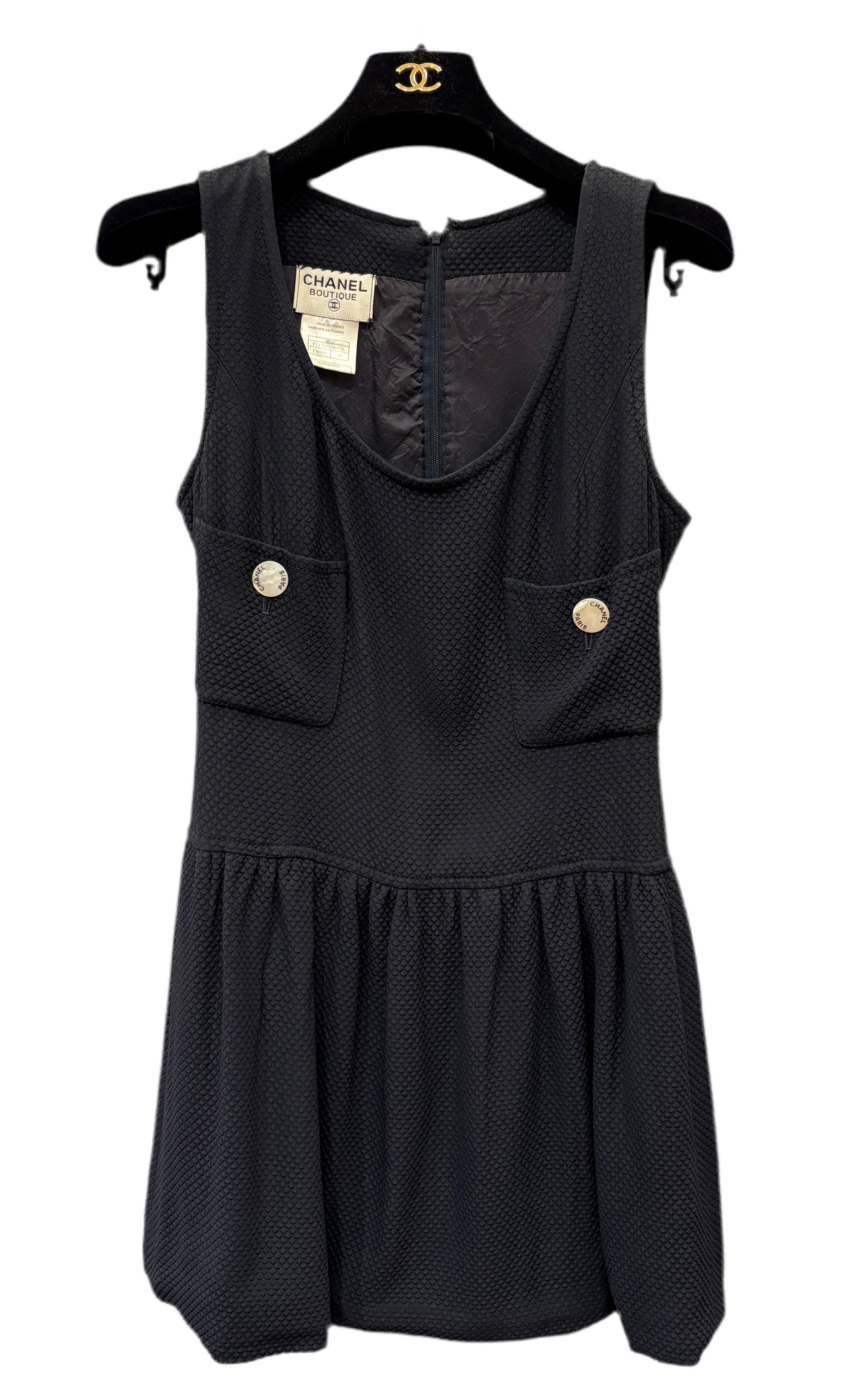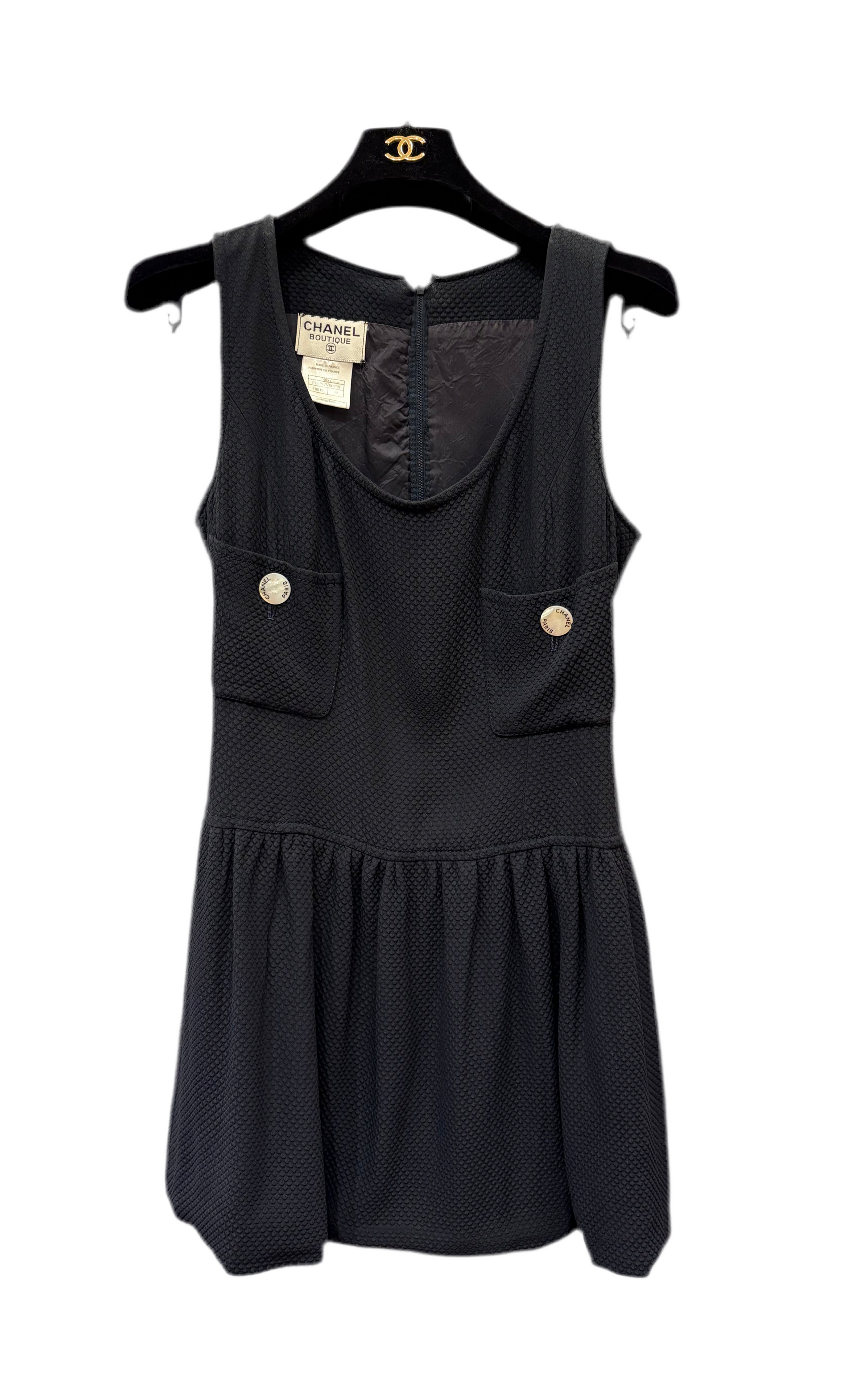 Chanel abito blu bottoni madreperla logo