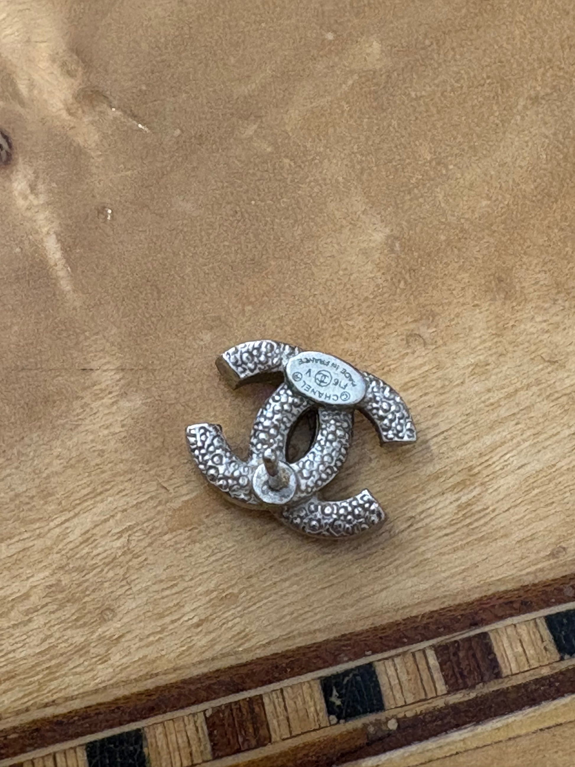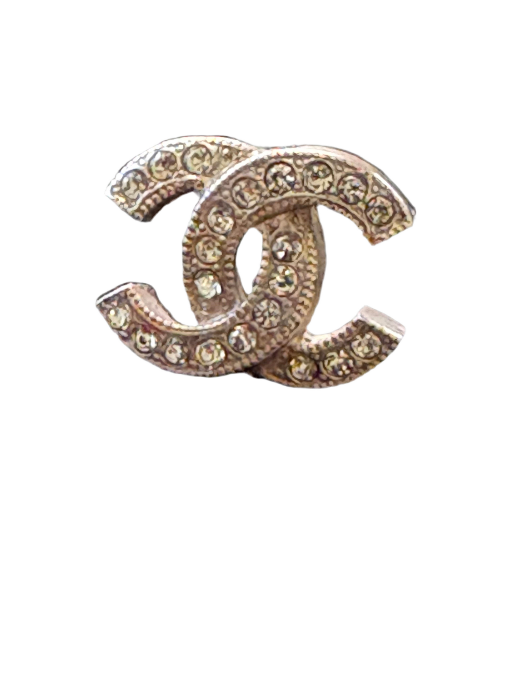 Chanel orecchini CC logo a vite in metallo silver con cristalli