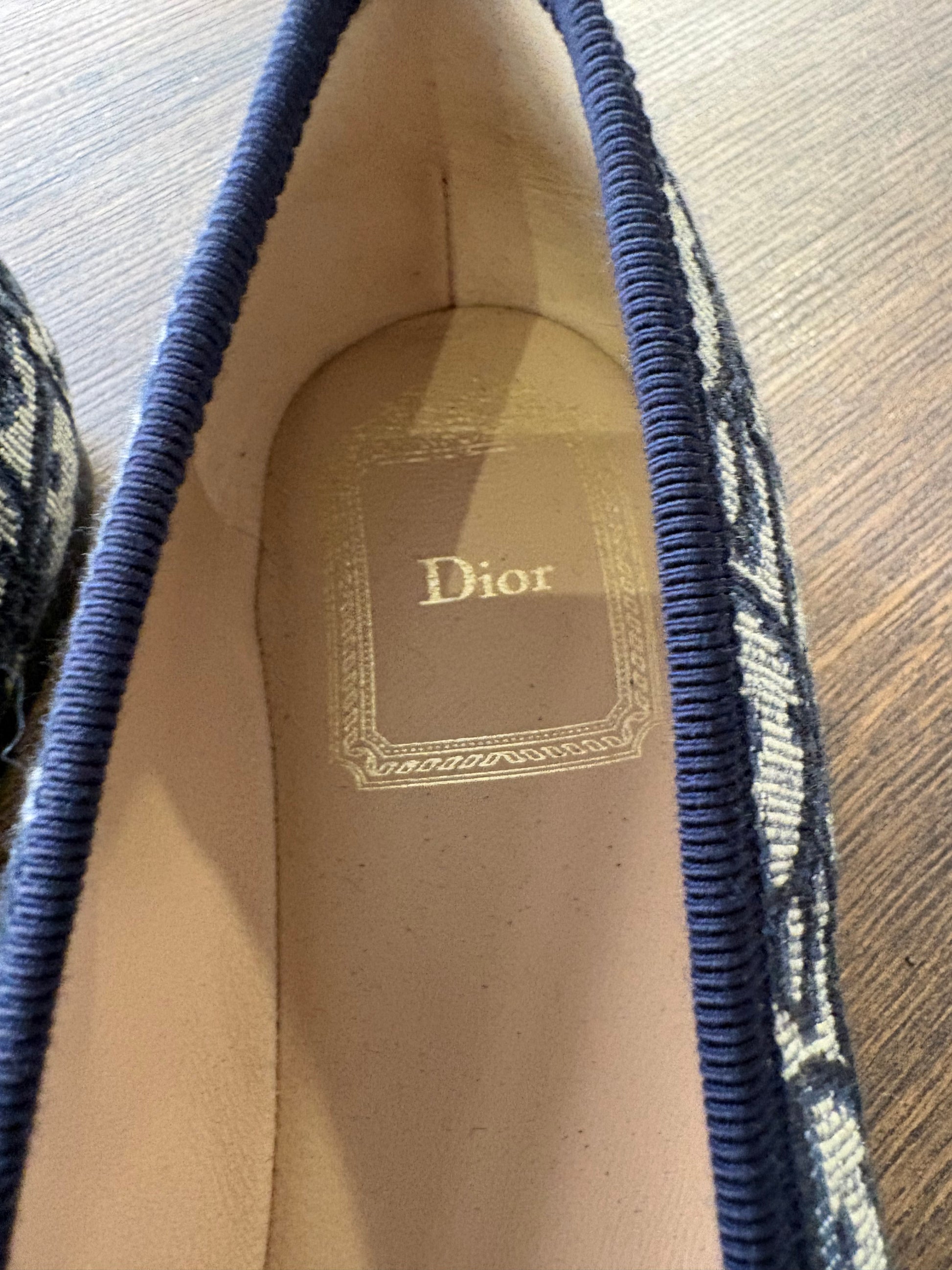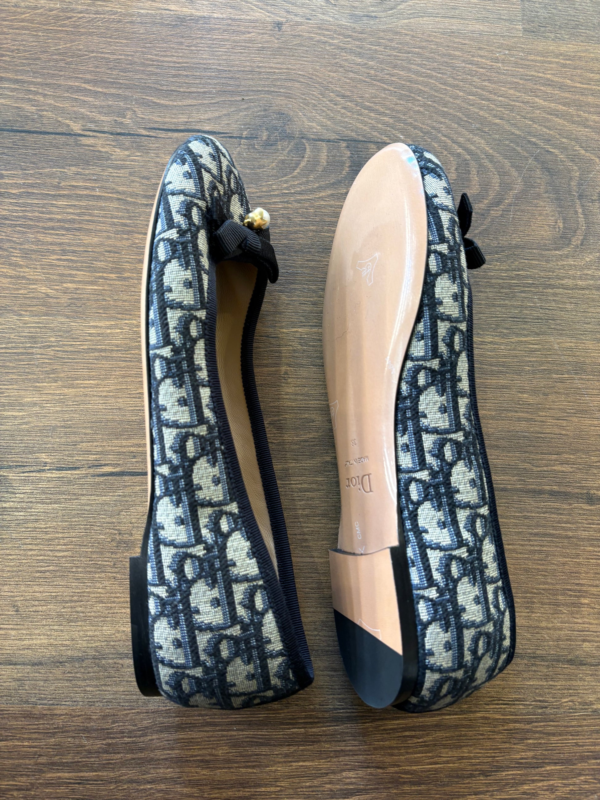 Christian Dior ballerine Oblique Ballet in jacquard beige e blu. Nuove
