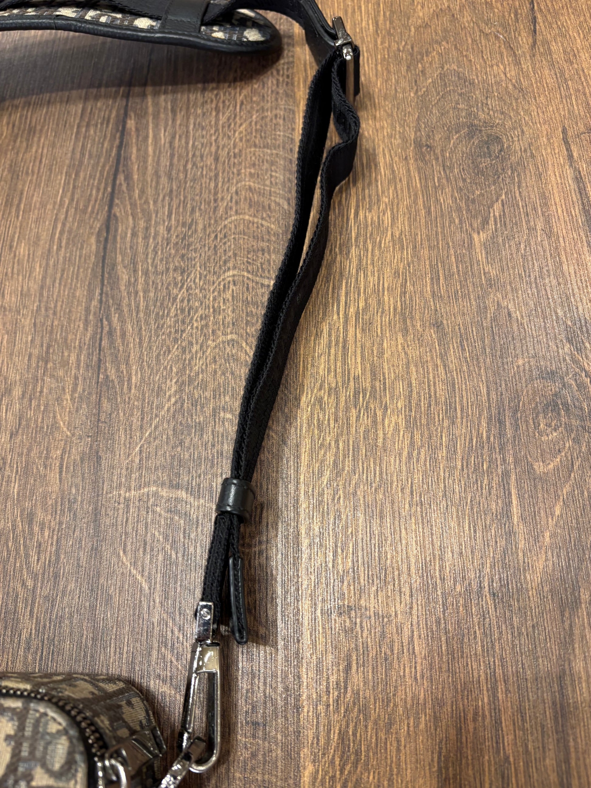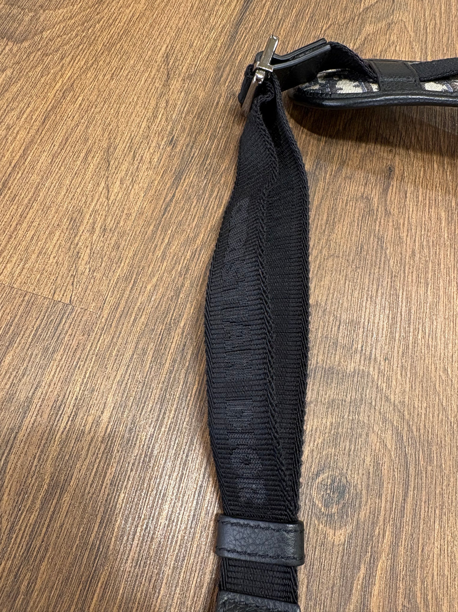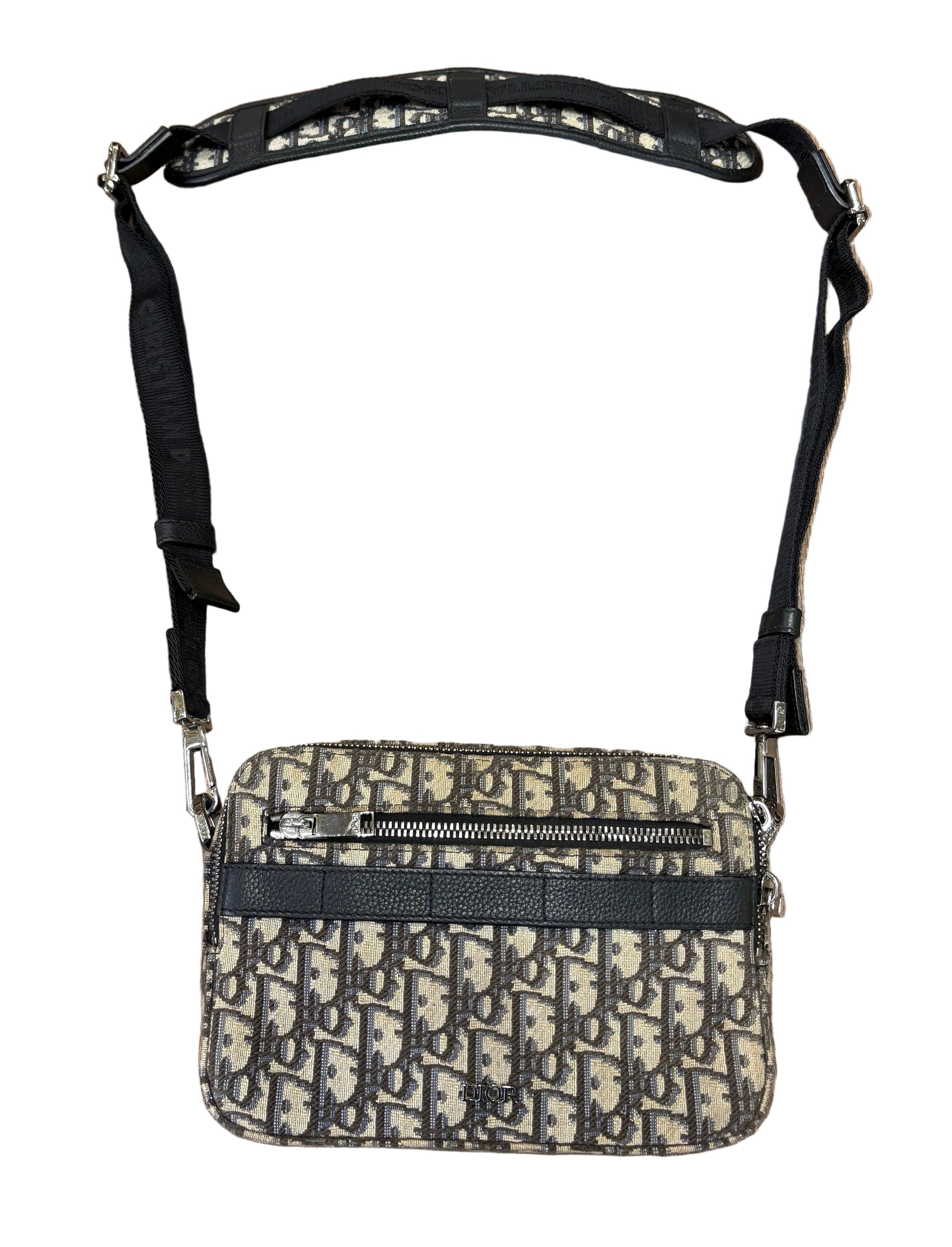 Borsa a tracolla Safari Jacquard Dior Oblique beige e nero. È un modello pratico e compatto di Dior da uomo. Realizzata in jacquard Dior Oblique beige e blu , con dettagli in pelle di vitello granulata nera.Presenta uno scomparto principale con cerniera e una tasca frontale per tenere gli oggetti essenziali a portata di mano. La tracolla regolabile e rimovibile, adornata dalla firma "Christian Dior", permettendo di indossarla a spalla o a tracolla (crossbody).