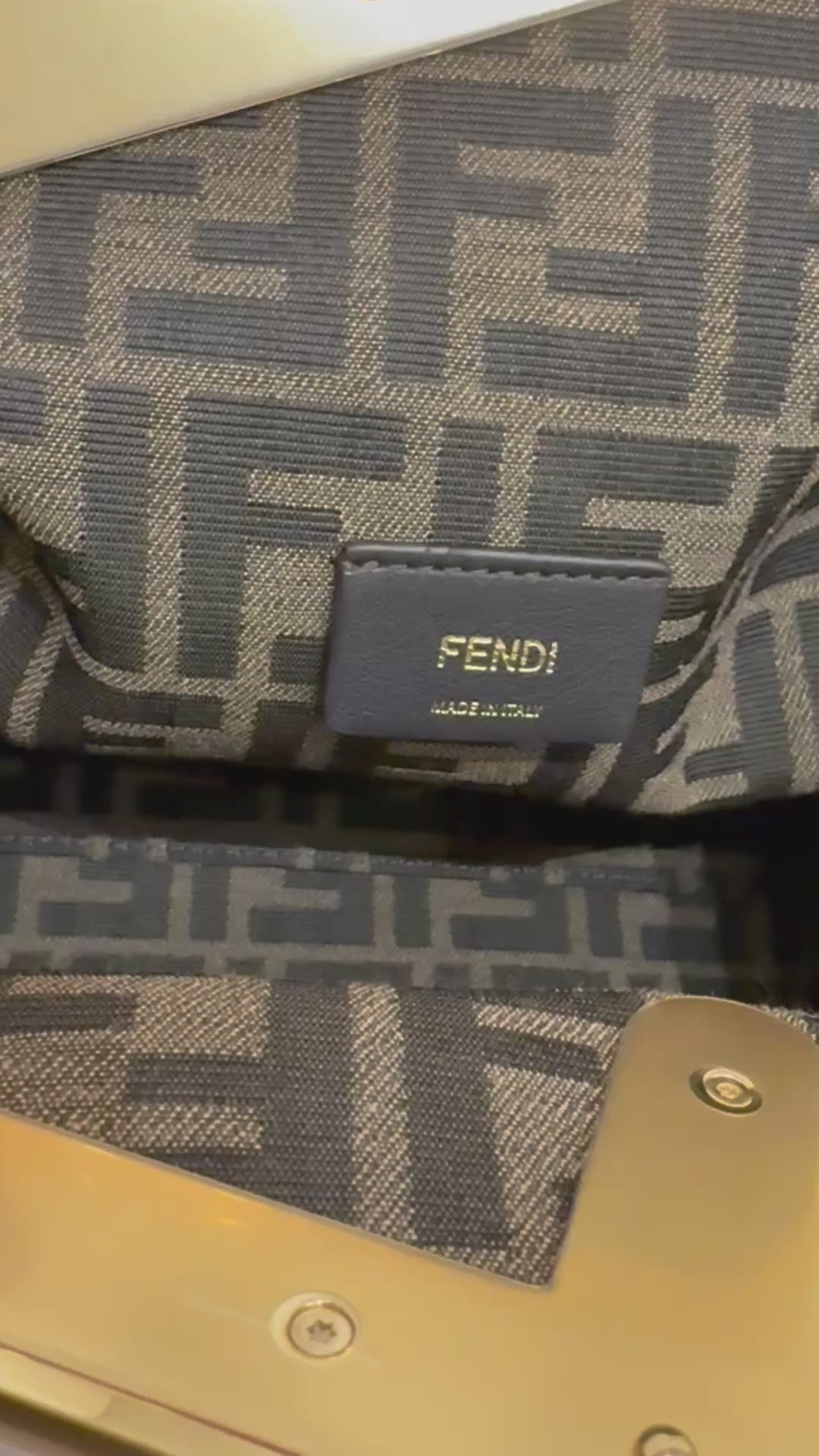 Dotata di uno scomparto interno foderato in tessuto con iconico motivo FF, ganci interni estraibili e accessori metallici con finitura dorata.