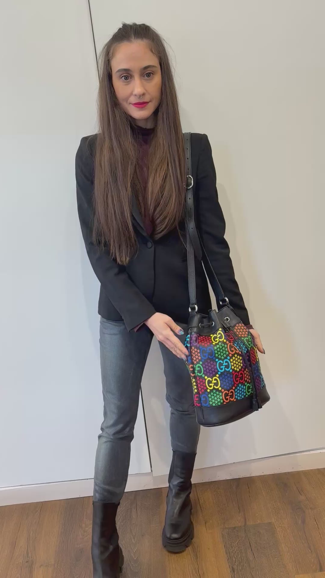 - Materiale: Tela GG Supreme psichedelica con finiture in pelle di vitello nera.