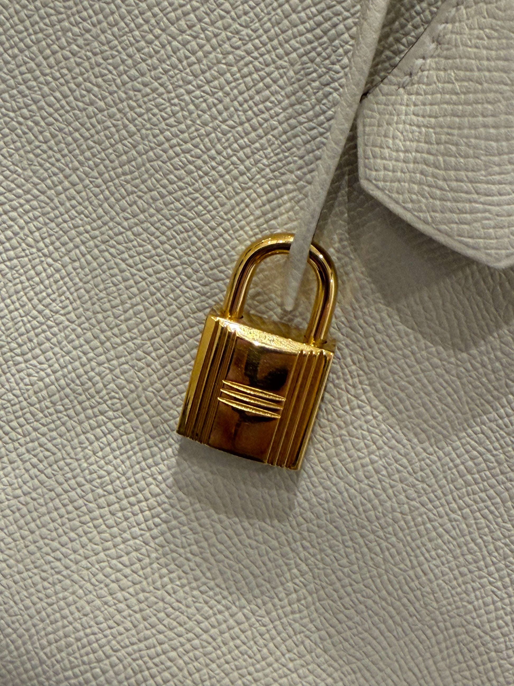 misura 35, pelle Epsom e colore Craie è una delle più iconiche e funzionali di Hermès, particolarmente apprezzata per i modelli Birkin e Kelly.1. Il Colore: Craie (10)