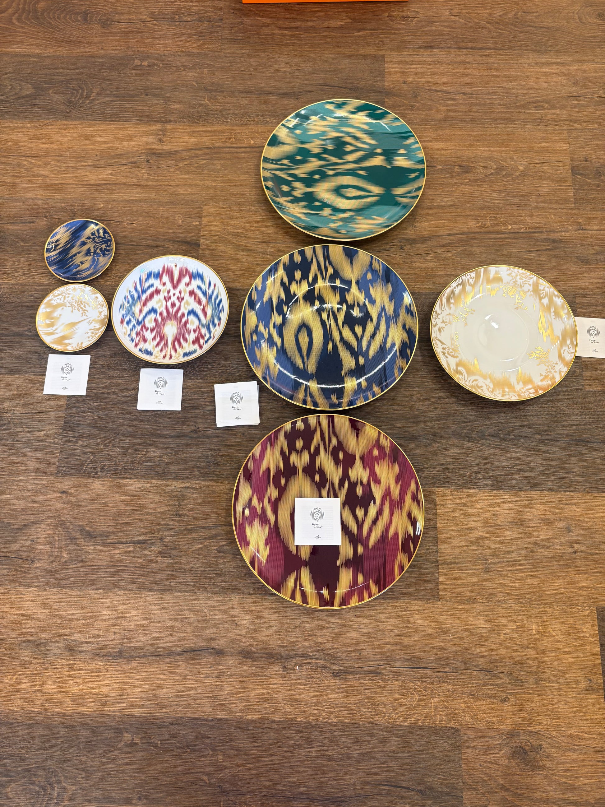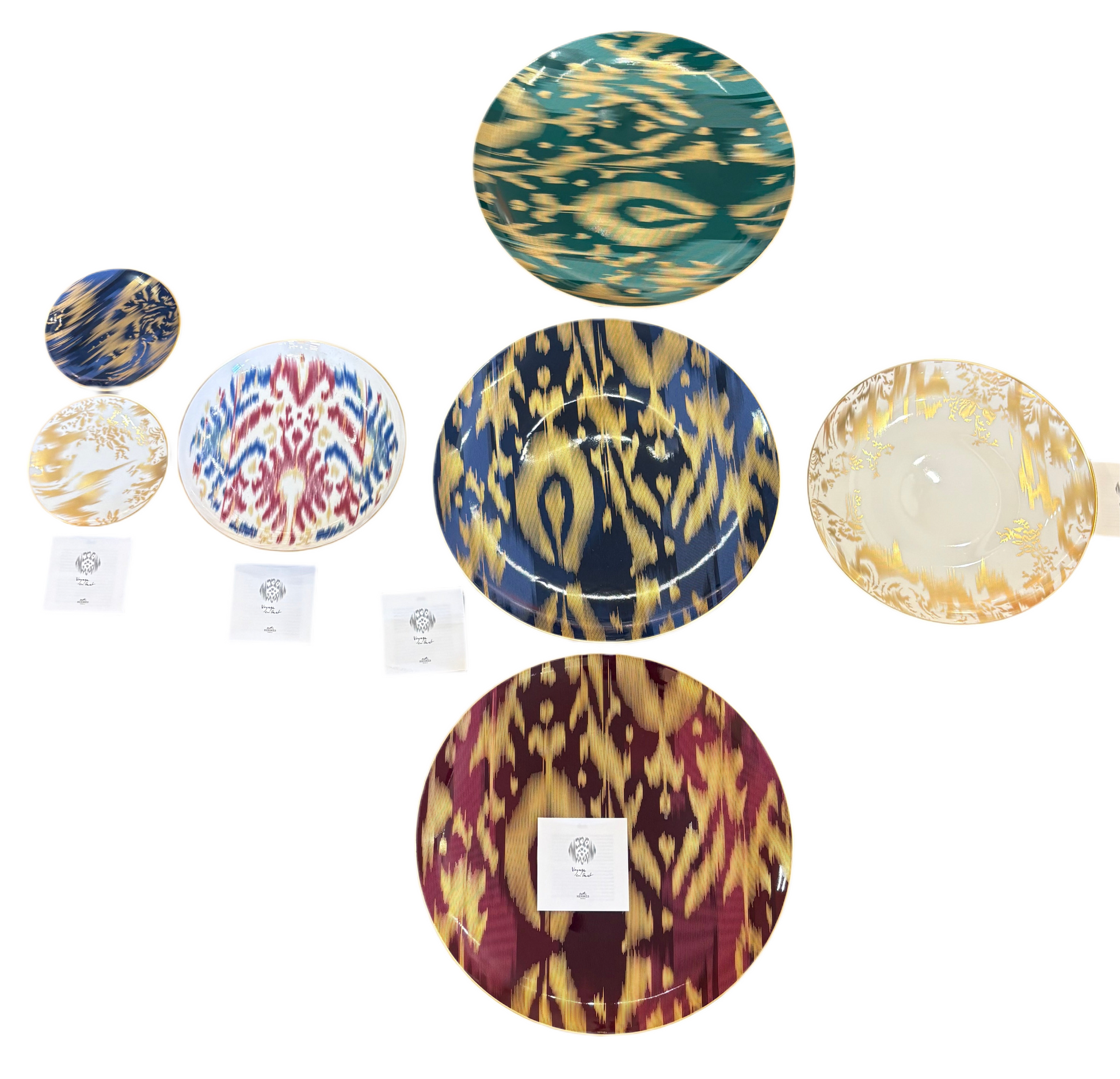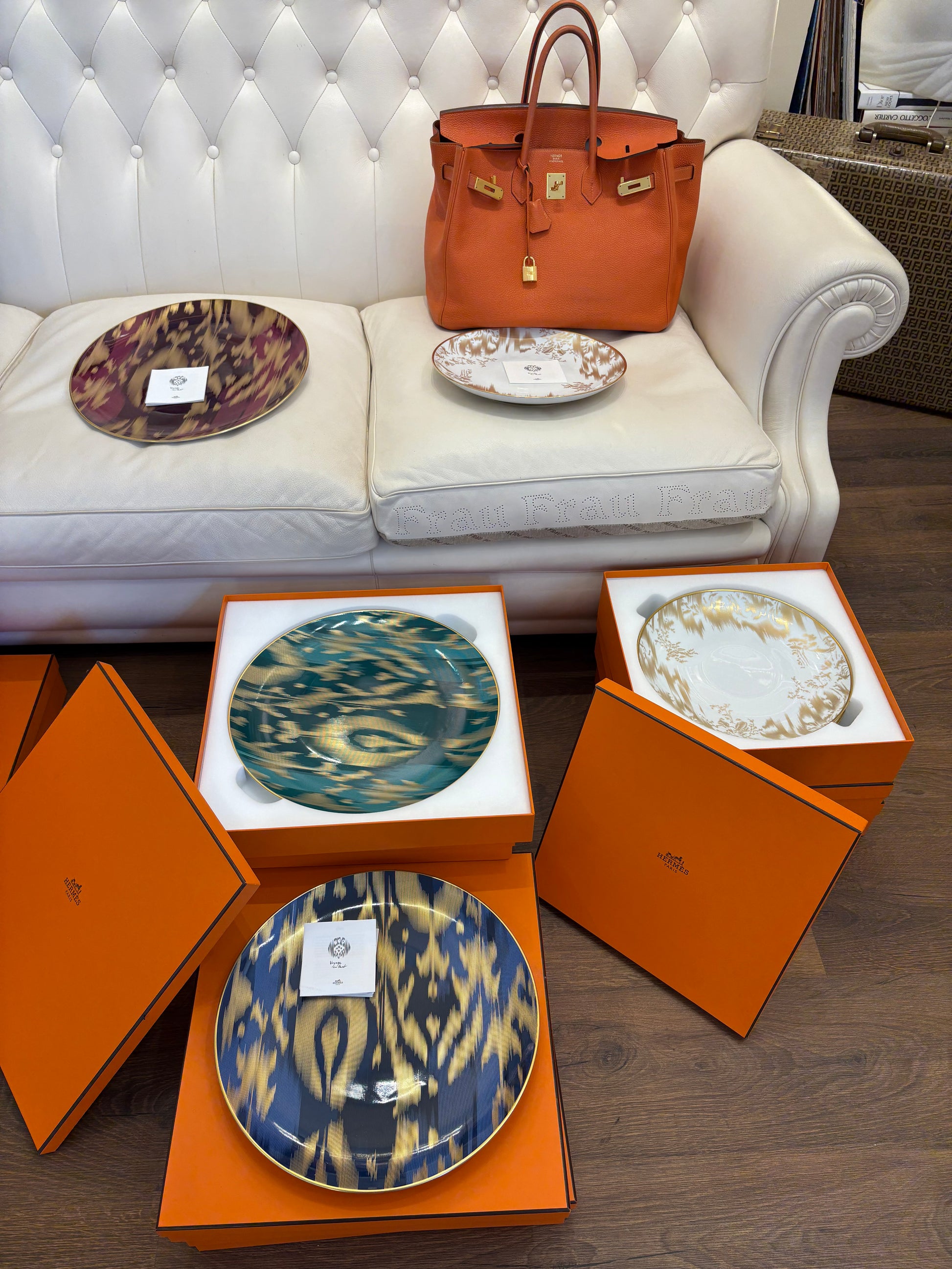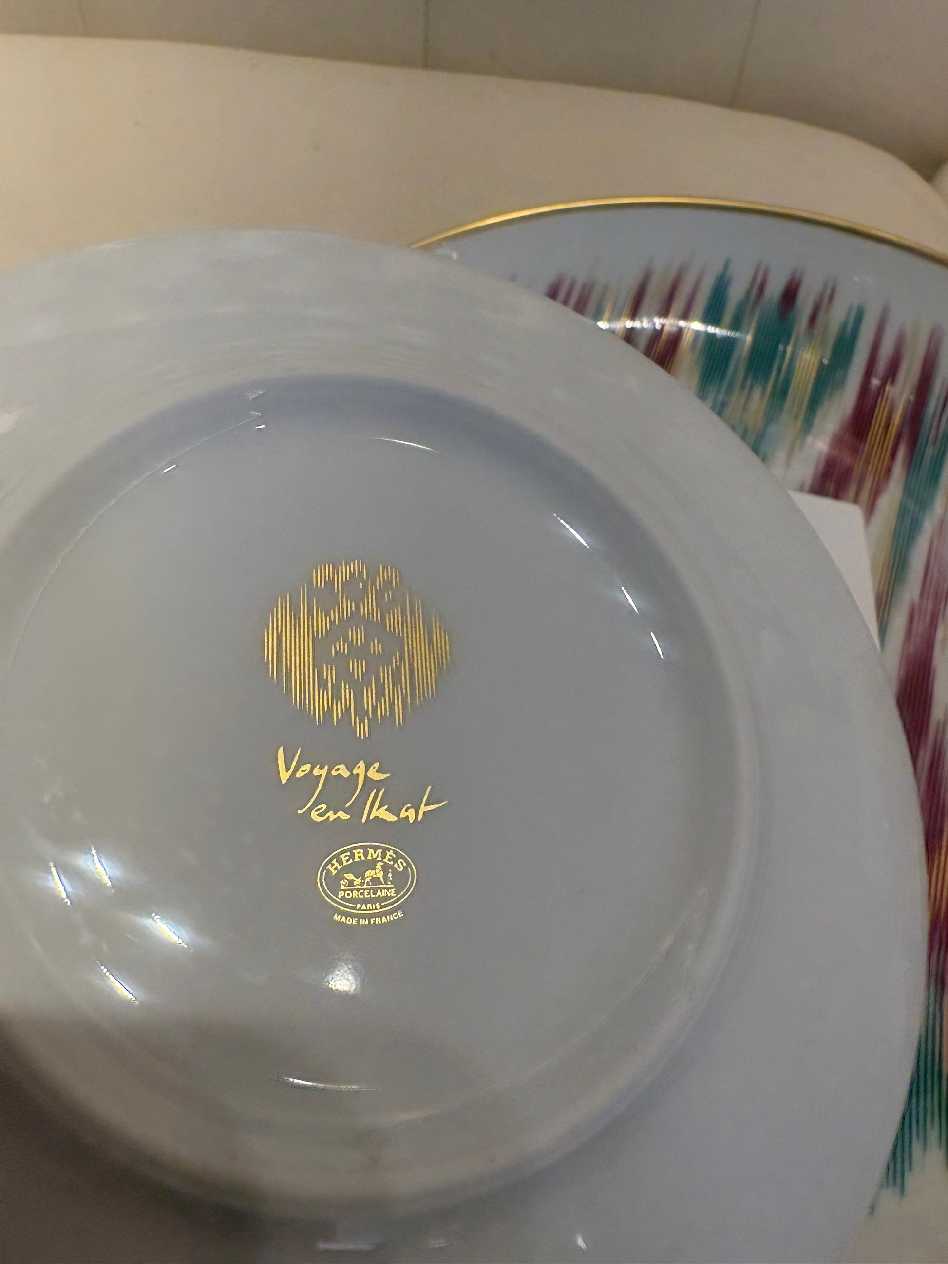 Hermès Vojage En Ikat set piatti in porcellana e oro
