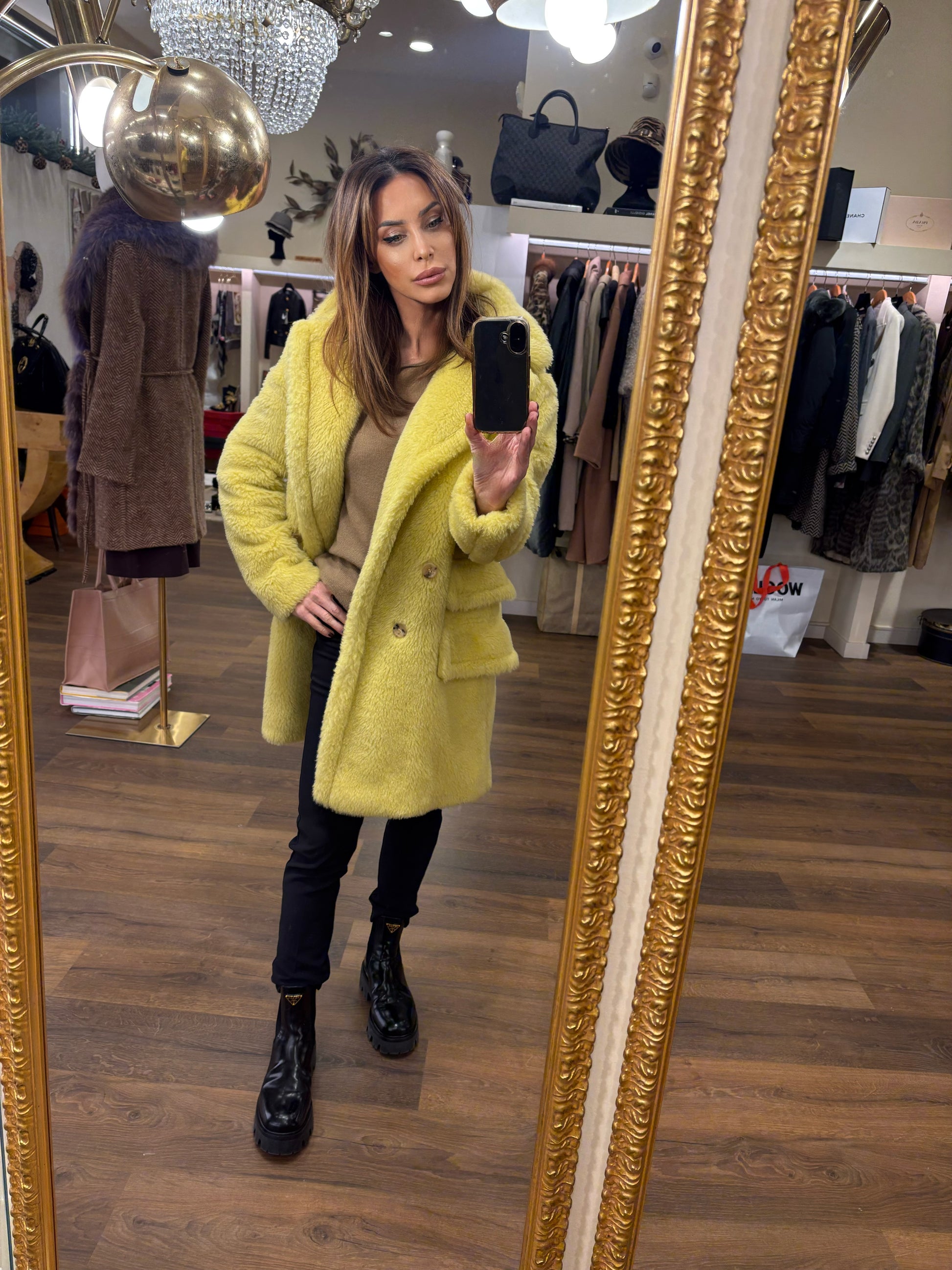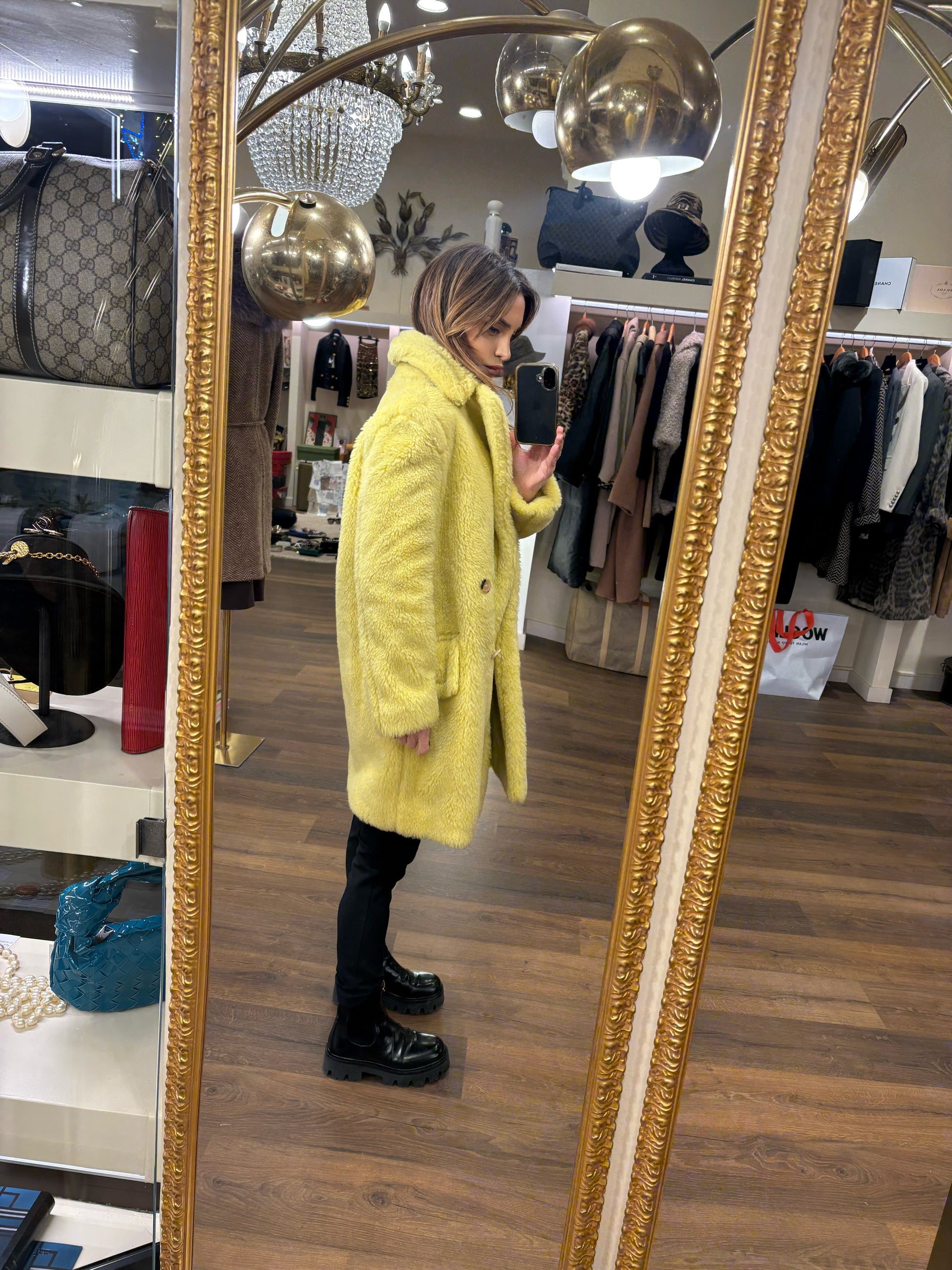 Max Mara cappotto Teddy Bear corto taglio oversize colore giallo , modello sovrapposto doppio petto chiusura bassa con un solo bottone