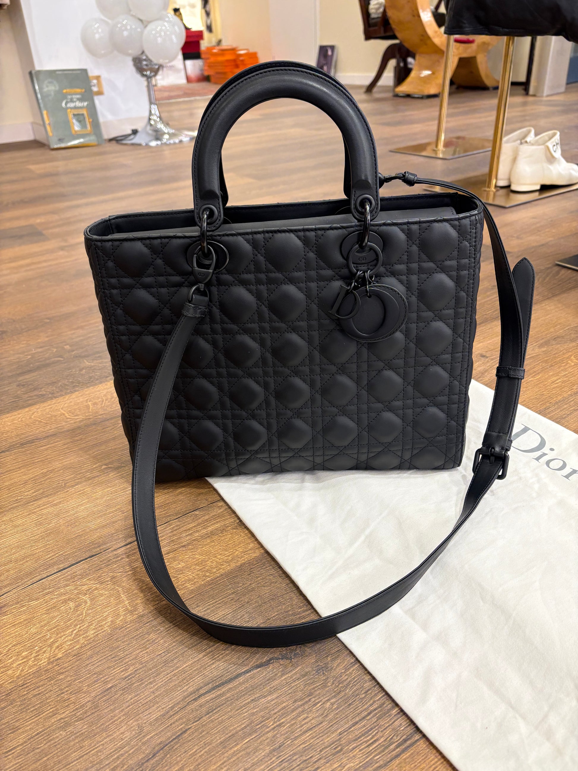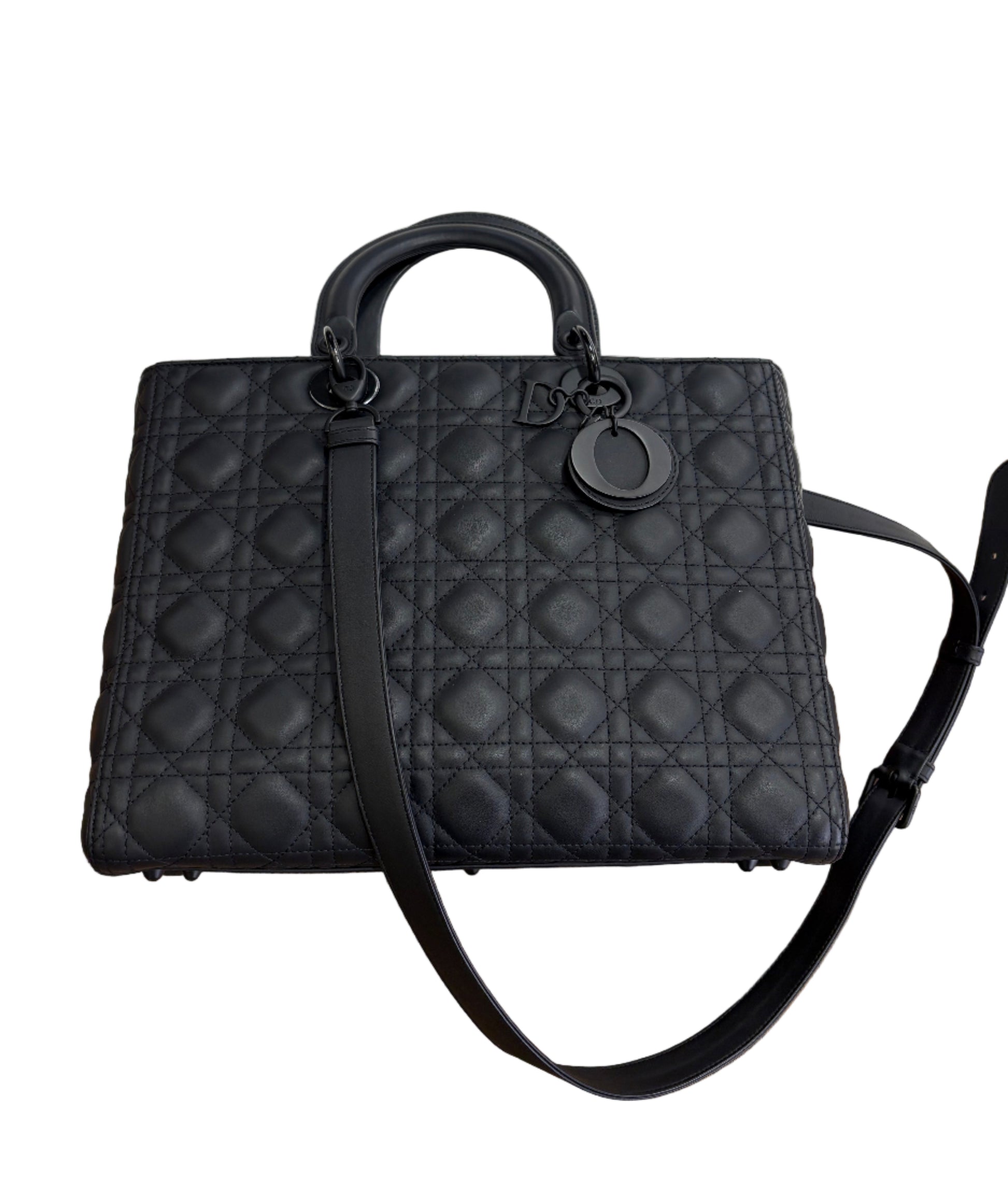 Lady Dior large in pelle ultra opaca cannage nero