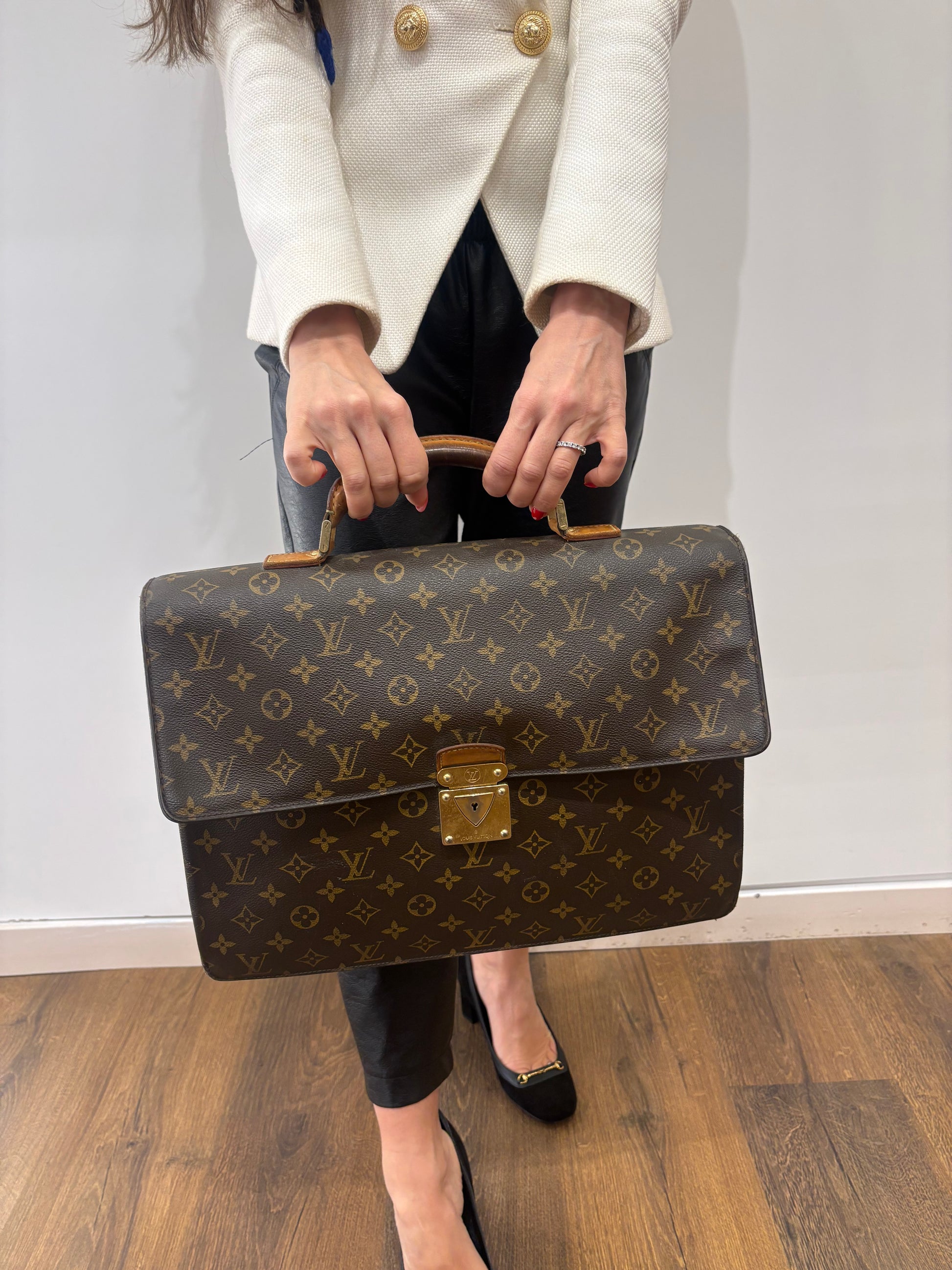 - Laguito: Una borsa business in tela Monogram e pelle naturale, caratterizzata da scomparti interni a soffietto e tasca esterna posteriore.