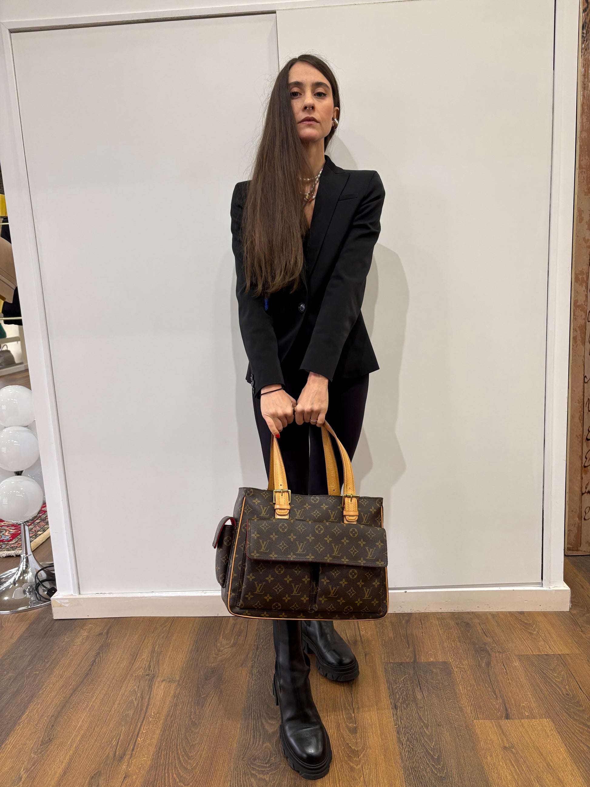 La borsa Louis Vuitton Multipli Cité è primariamente una borsa a spalla (shoulder bag). I suoi manici in pelle di vacchetta sono regolabili tramite fibbie e sono progettati per essere indossati comodamente sulla spalla. In alcune descrizioni viene anche indicata come borsa a mano, ma la lunghezza dei manici la rende adatta primariamente al porto a spalla.