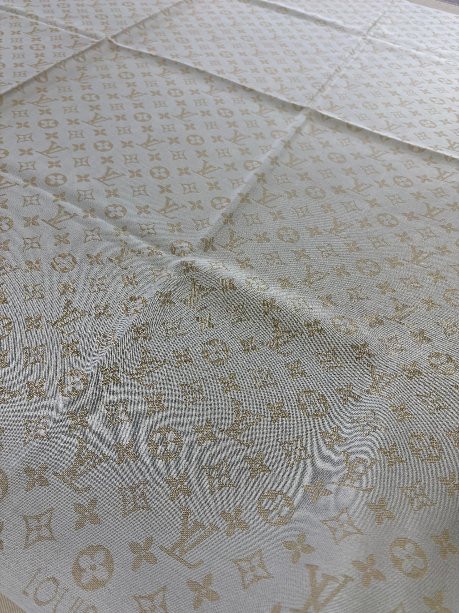 scialle Monogram Shine di Louis Vuitton in una tonalità chiara avorio beige metallizzato leggermente dorato