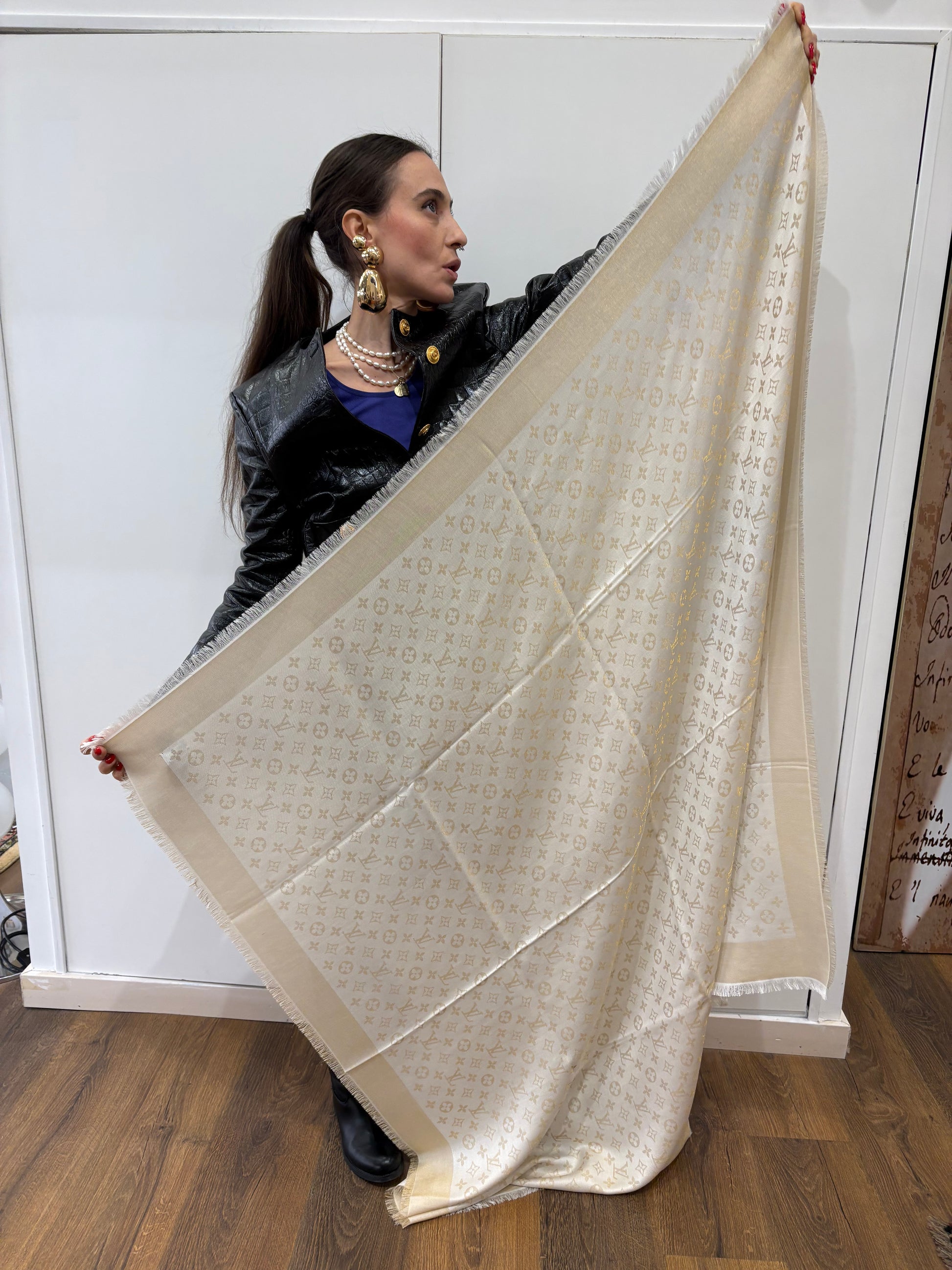 Louis Vuitton scialle Shine avorio / beige metallizzato