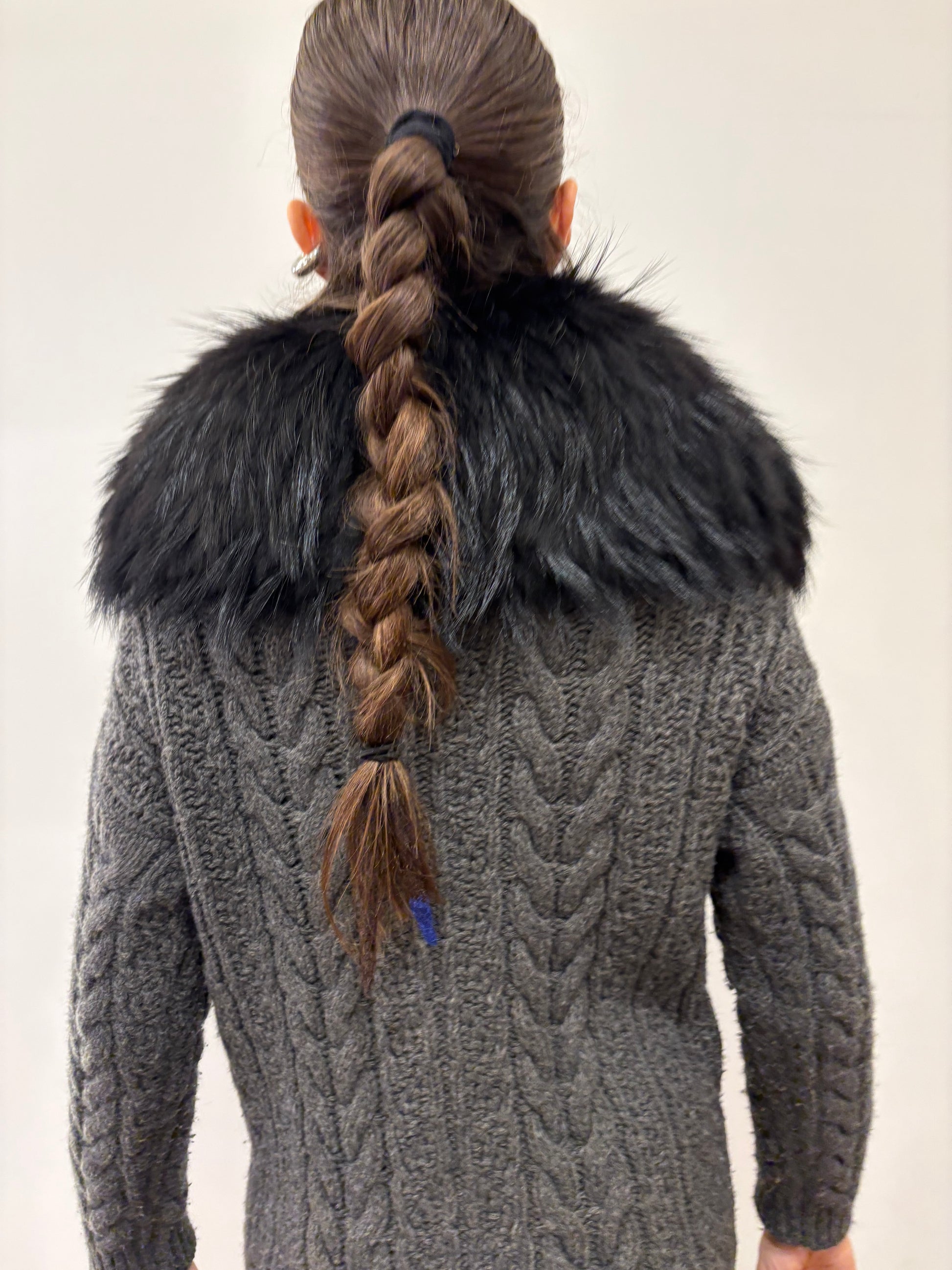 Prada cappottino trecce in lana e collo volpe nero