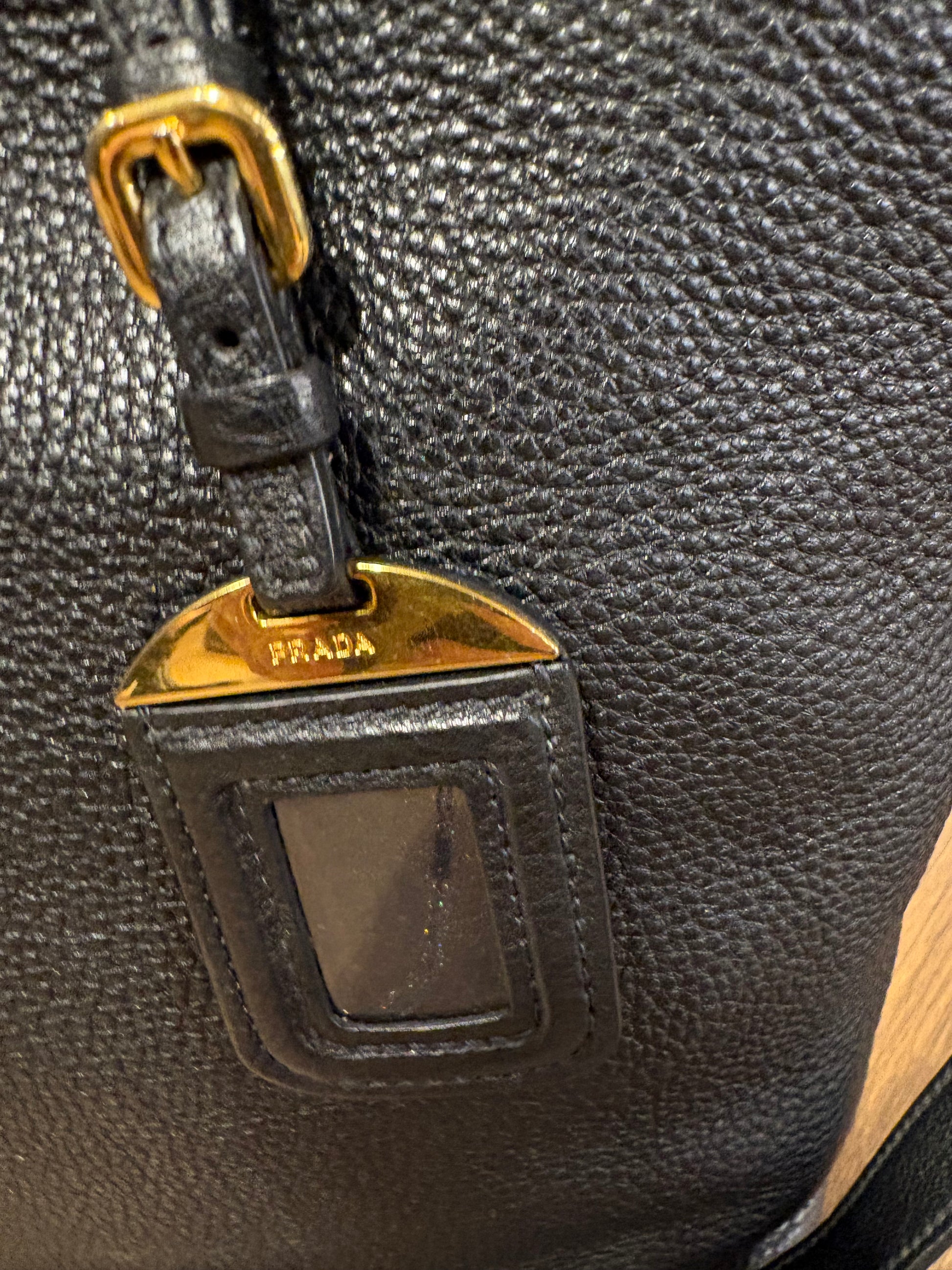 - Dettagli: Presenta il classico logo Prada in metallo sul davanti e una targhetta portabagagli in pelle abbinata.