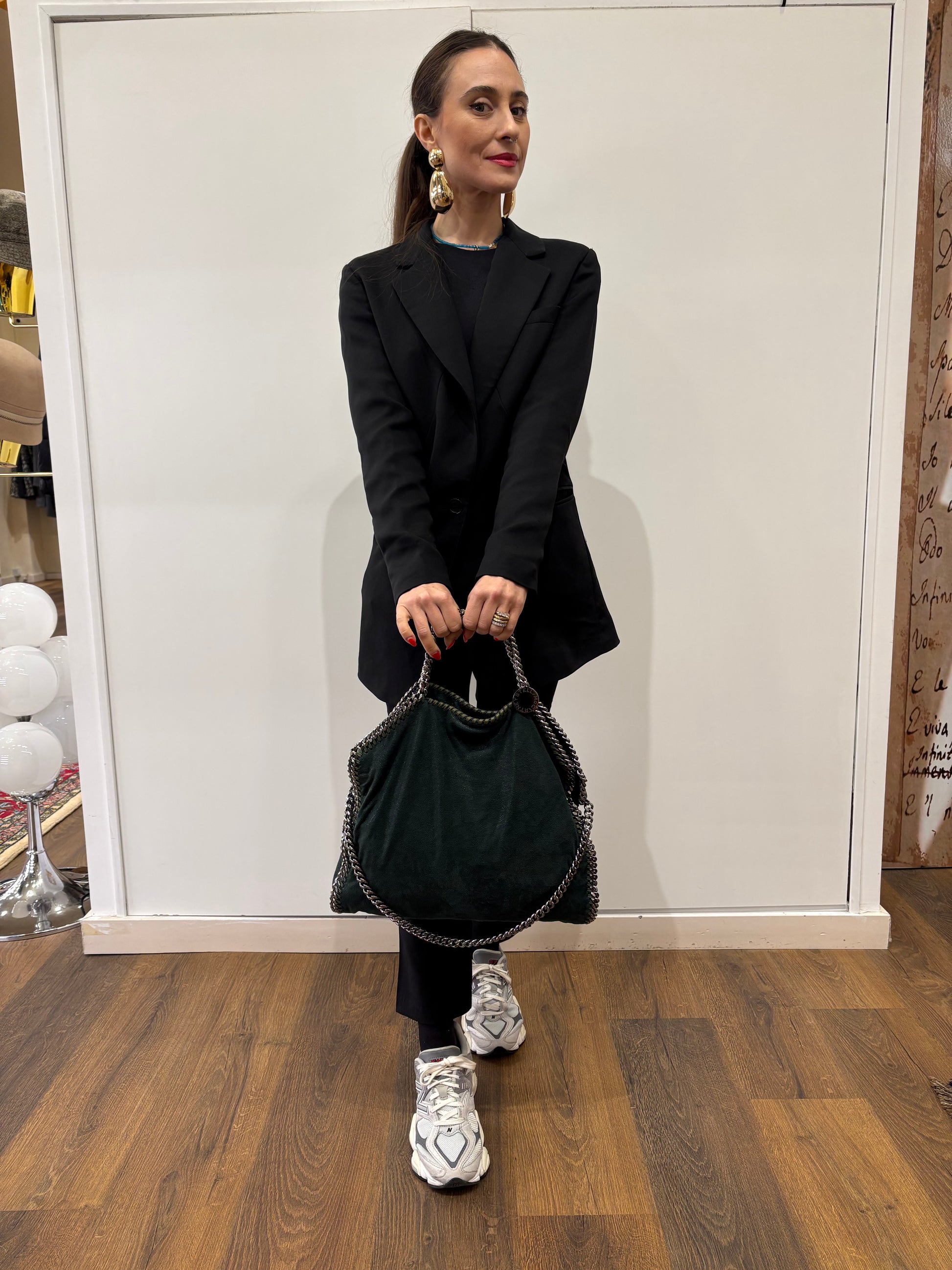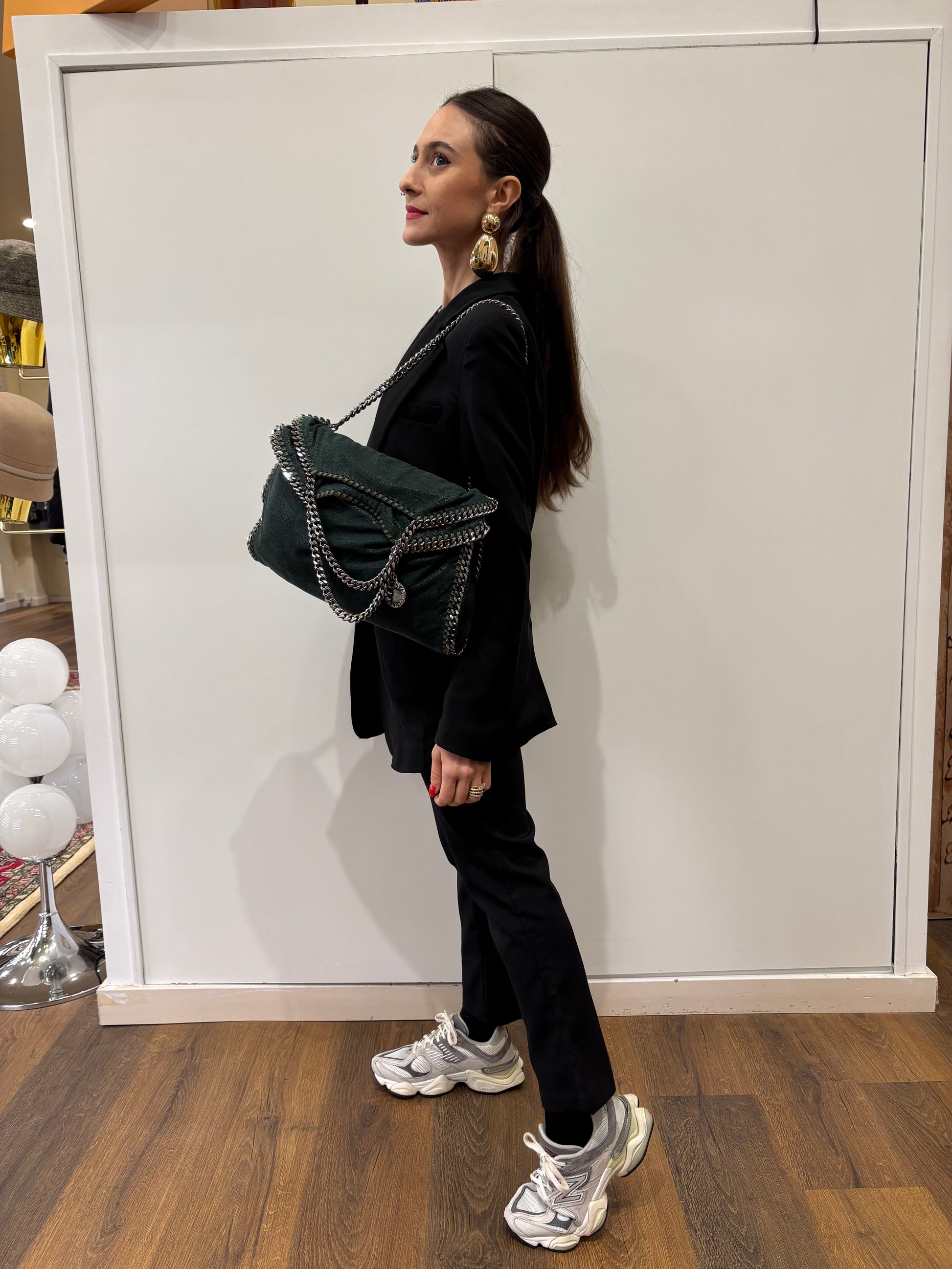 Stella McCartney Falabella in pelle vegana verde con finiture color argento