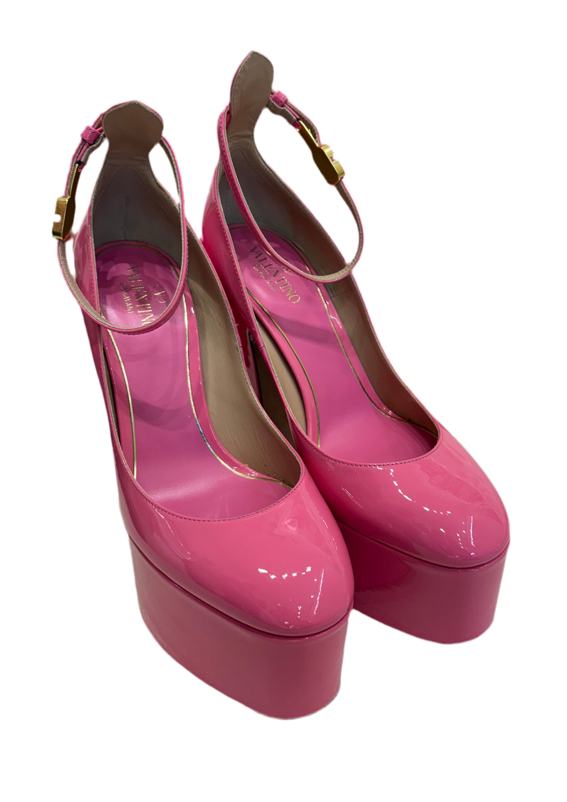 Valentino Garavani décolleté in pelle lucida rosa fucsia con cinturino alla caviglia , indossate un’ora per errato numero sinprenstabo in perfetto stato senza graffi