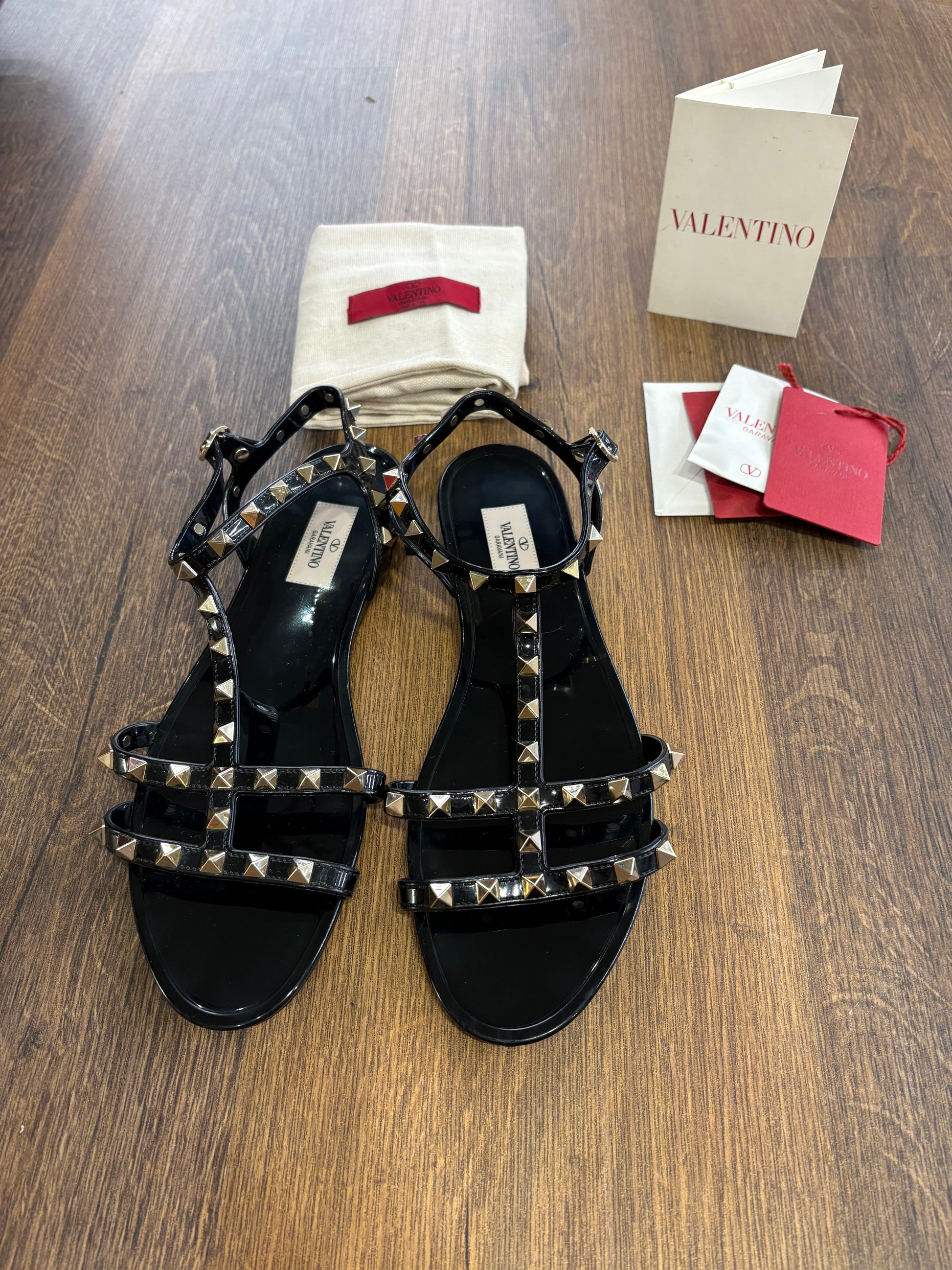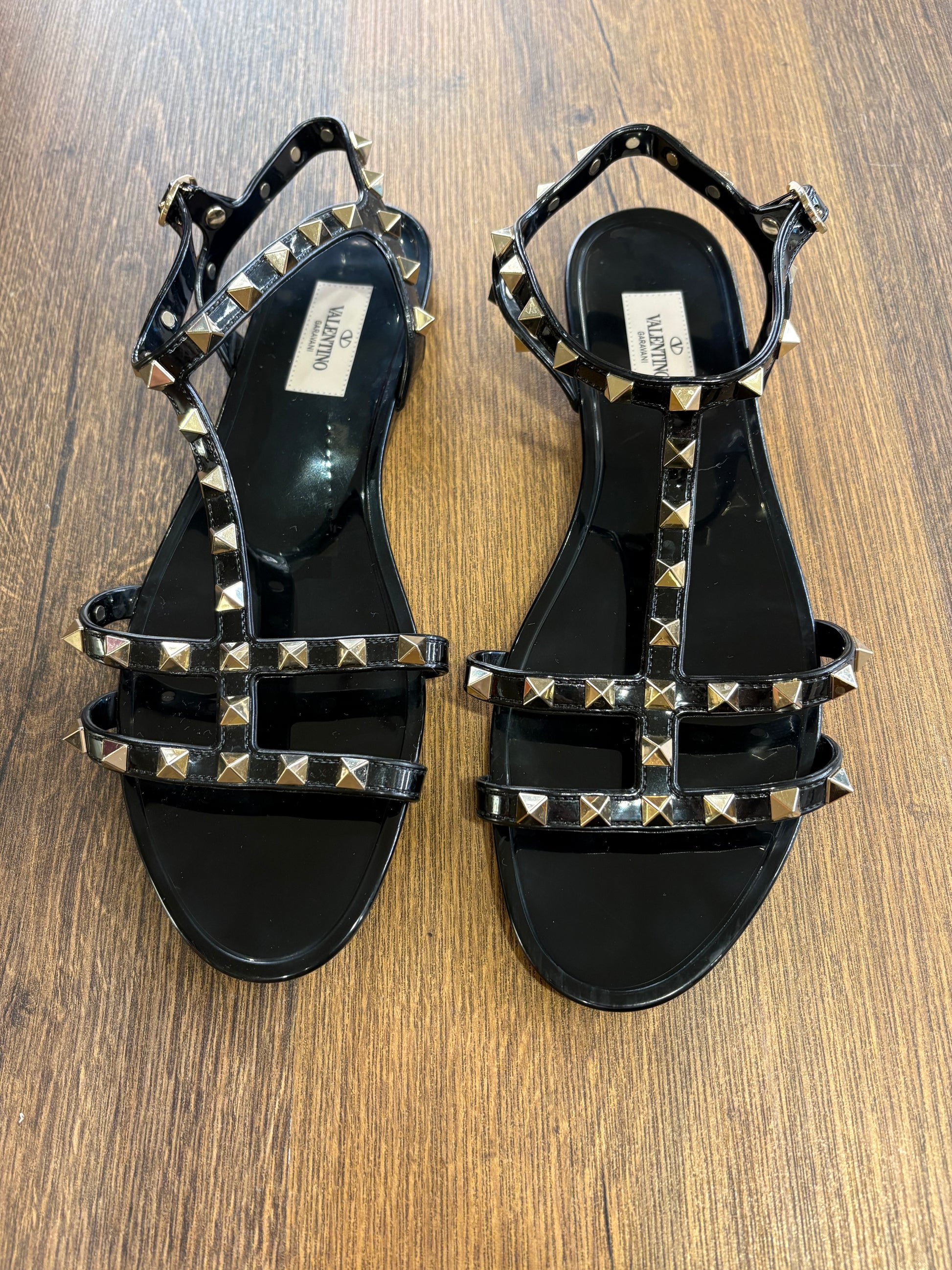 Valentino Rockstud sandali in pvc nero borchie dorate . Artricolo perfetto pari al nuovo completo di borchie di ricambio e custodie anti polvere .n.40