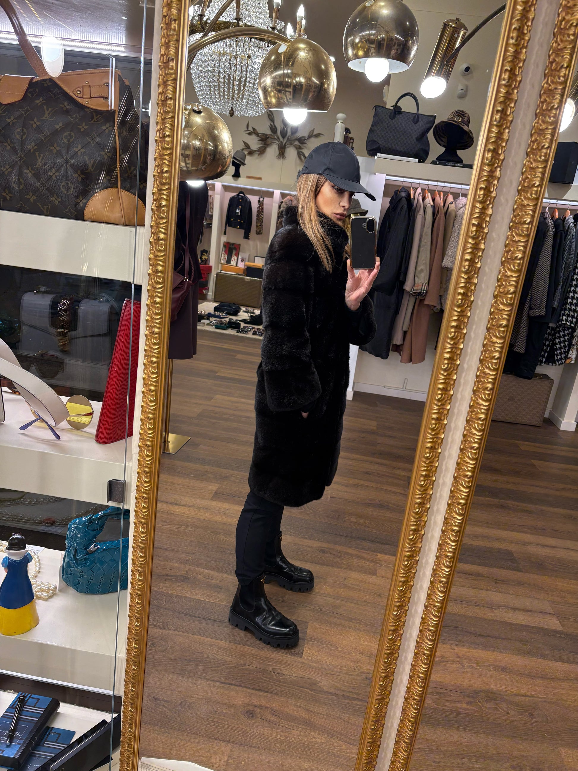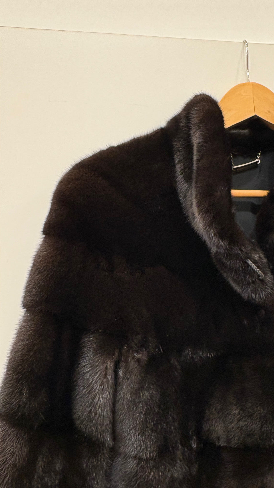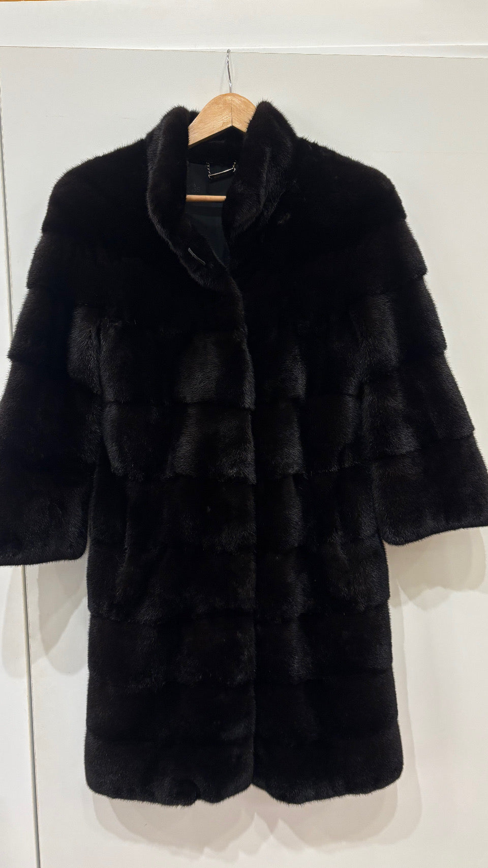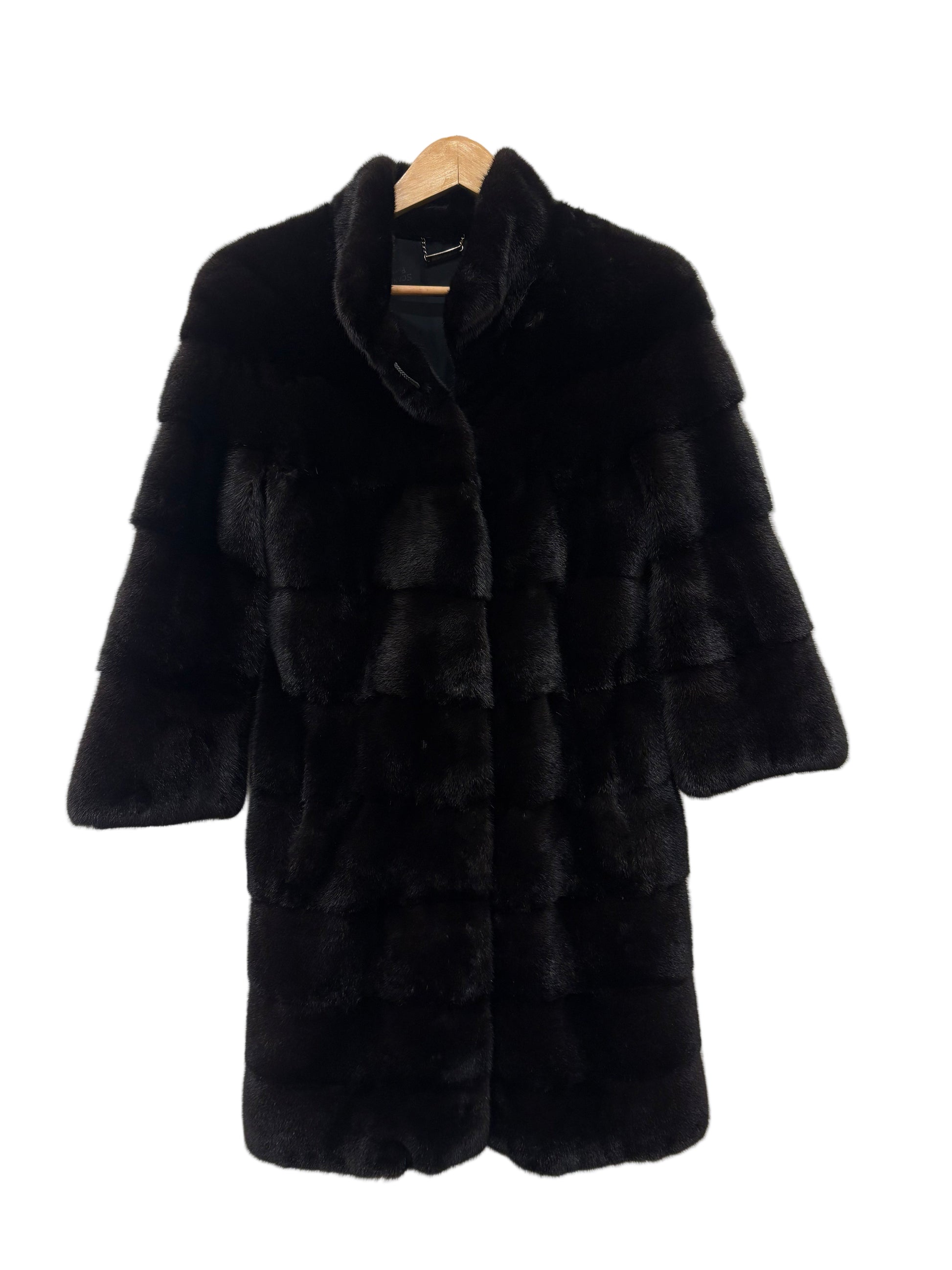 Stupendo visone nero avvitato taglio orizzontale collo rialzato e maniche 3/4 , qualità femmina , leggerissimo . Rigenerato , nuovo di pellicceria ( attuale non vintage )